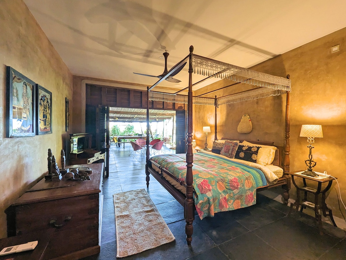 Justo al lado de la carretera ECR, la vida se siente fácil aquí: descalzo en la hierba, café en la mano, el aire de la mañana todavía fresco. La playa también está a 5 minutos a pie. La casa se mueve contigo: libros para leer, juegos para jugar, comidas para compartir. A los niños les encanta el espacio y los viajeros solitarios se sienten seguros. Cuando llueve, es mágico. Los árboles se balancean, el aire huele a tierra, el sonido te rodea mientras te mantienes seco. También está cerca de Mahabalipuram, un sitio declarado patrimonio de la humanidad por la UNESCO, si te gusta explorar la historia y la cultura.