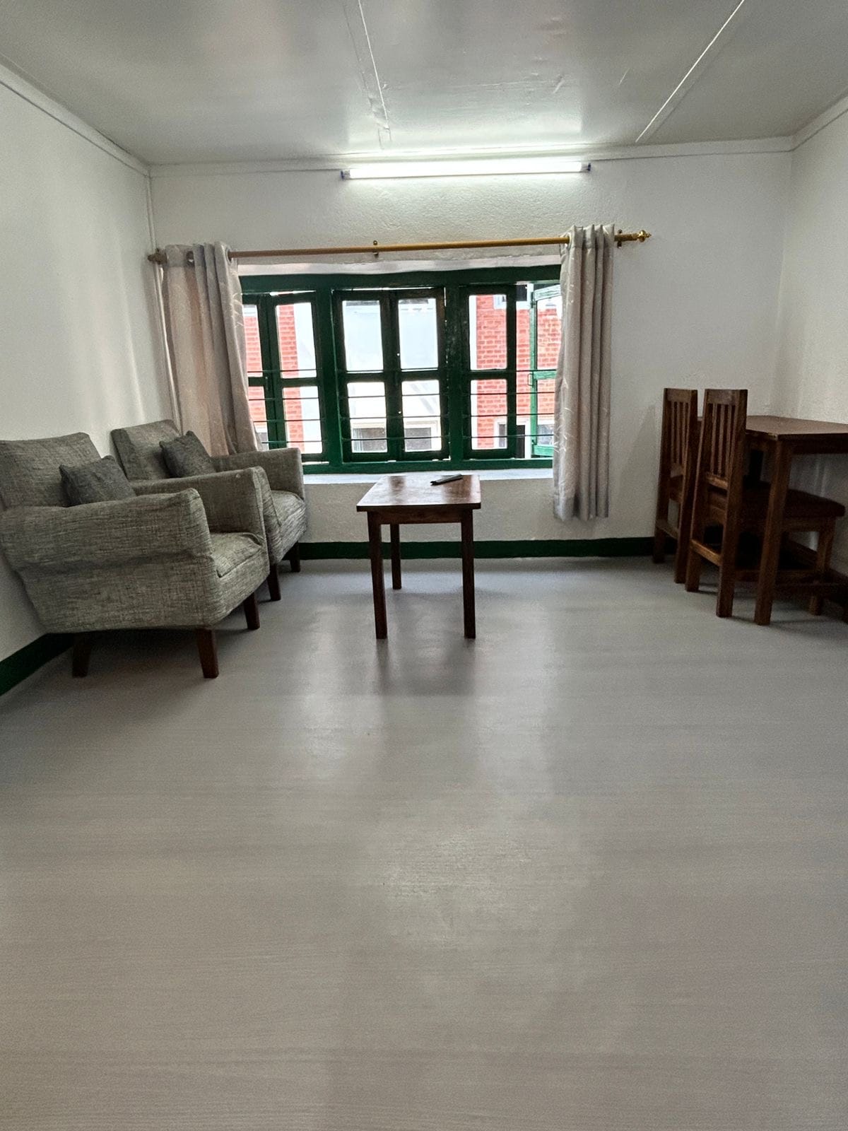 ¡Tu estudio en el centro de Katmandú! Estudio luminoso y moderno cerca de la acción de Thamel, pero tranquilo. Cuenta con una cómoda cama tamaño queen, una zona de estar dedicada y una cocina americana funcional (fregadero, cocina de gas, microondas, nevera, enfriador de agua). Incluye un baño interno privado, un lavabo con secador de pelo y un armario. Diseño limpio con ribete verde clásico. ¡Perfecto para parejas/viajeros solos que buscan comodidad y valor!
