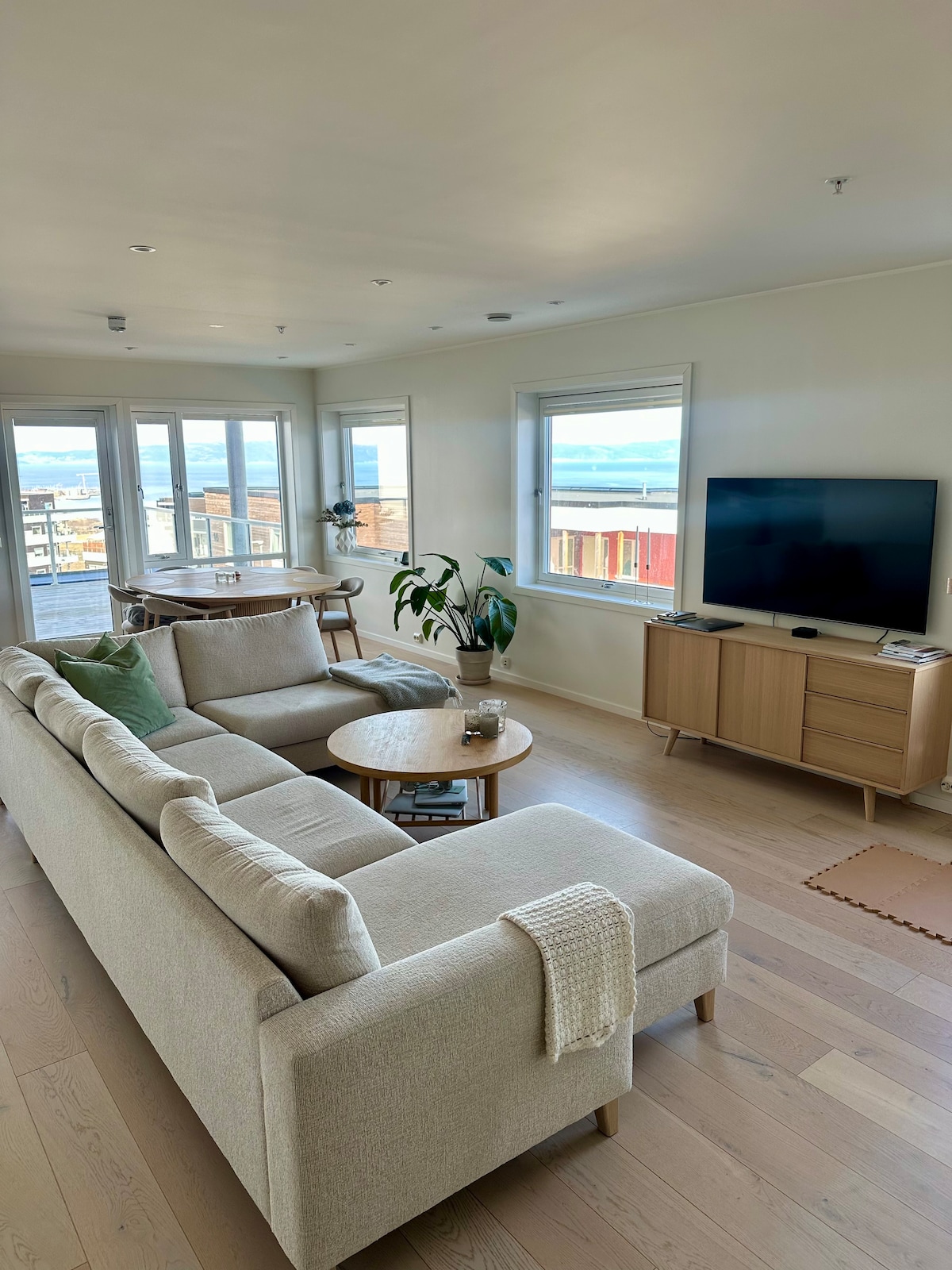 Velkommen til en delikat og romslig 3-roms hjørneleilighet i rolige omgivelser på Ranheim – kun ca. 10 minutter fra Trondheim sentrum. Fra stuen har du direkte utgang til en stor, solrik balkong med utsikt over Trondheimsfjorden. Enkelte møbler vil avvike noe fra bildene, men leiligheten er fullt møblert Beliggenheten er ideell med kort vei til dagligvarebutikker, samt gode kollektivforbindelser til Trondheim sentrum. Et perfekt sted for både korte og lengre opphold.