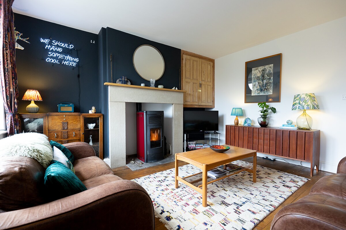 Granero de lujo con chimenea. A minutos de 2 colinas, pubs, cafeterías, descanso.
