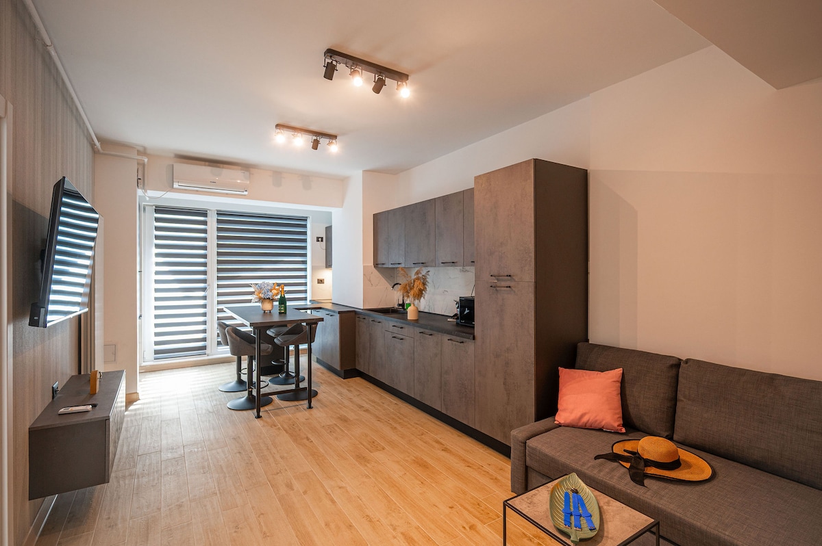 El apartamento Rayan está situado en Odyssey by Alezzi Resort (el complejo más nuevo, abierto en 2025). Este acogedor apartamento de un dormitorio ofrece alojamiento para 4 adultos o 2 adultos y 2 niños. La distancia a la playa es de alrededor de 300 metros y el área de playa es una de las más buscadas en Mamaia Nord Resort. A poca distancia de la playa, restaurantes. * Acceso gratuito al SPAy al parque infantil * Acceso gratuito a piscinas durante todo el año y área de fitness. * Wifi y aparcamiento gratuitos * ¡Café/agua! * Asistencia las 24 horas, los 7 días de