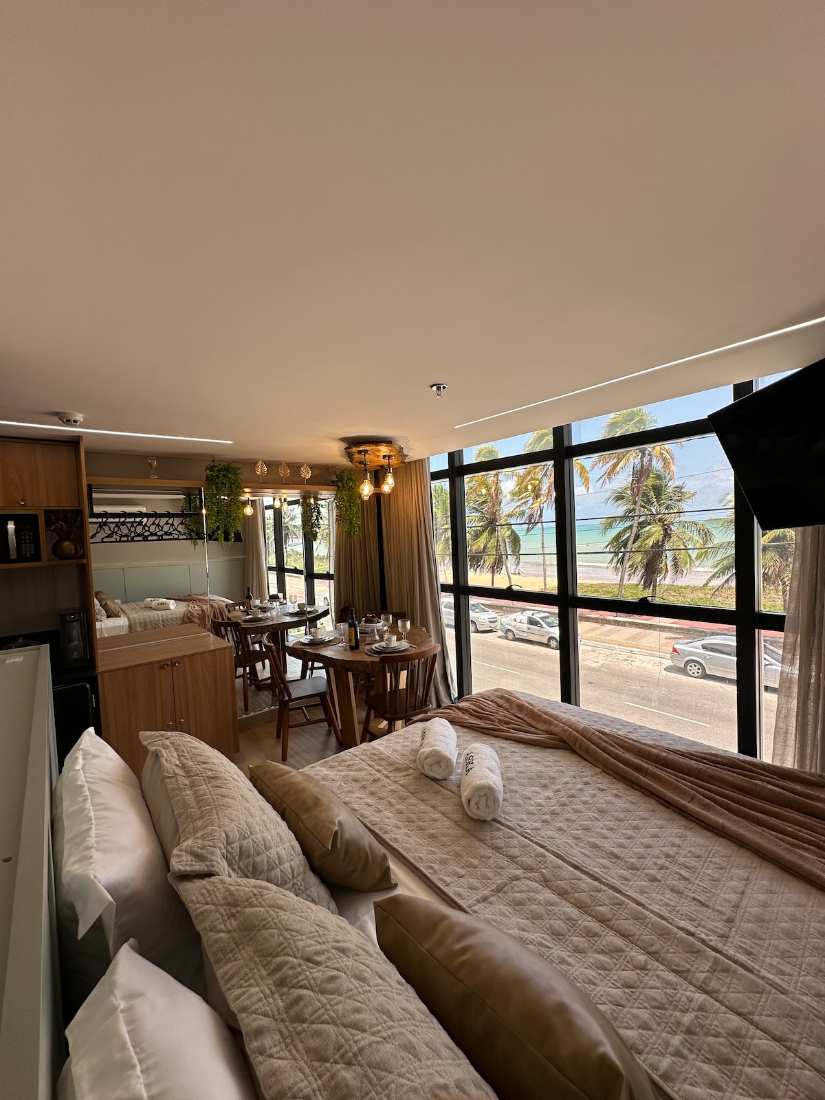 Enjoy our stunning beachfront apartment! 🌴🌊 The Studio reception is open 24 hours. Spacious and comfortable, it offers an incredible ocean view and is located on one of the most spectacular beaches in the region — the perfect retreat for those looking to relax and recharge. Surrounded by charming restaurants, you’ll also be just steps away from Mag Shopping — a seaside mall with panoramic ocean views. 🚗 Parking spaces are rotating and subject to availability.