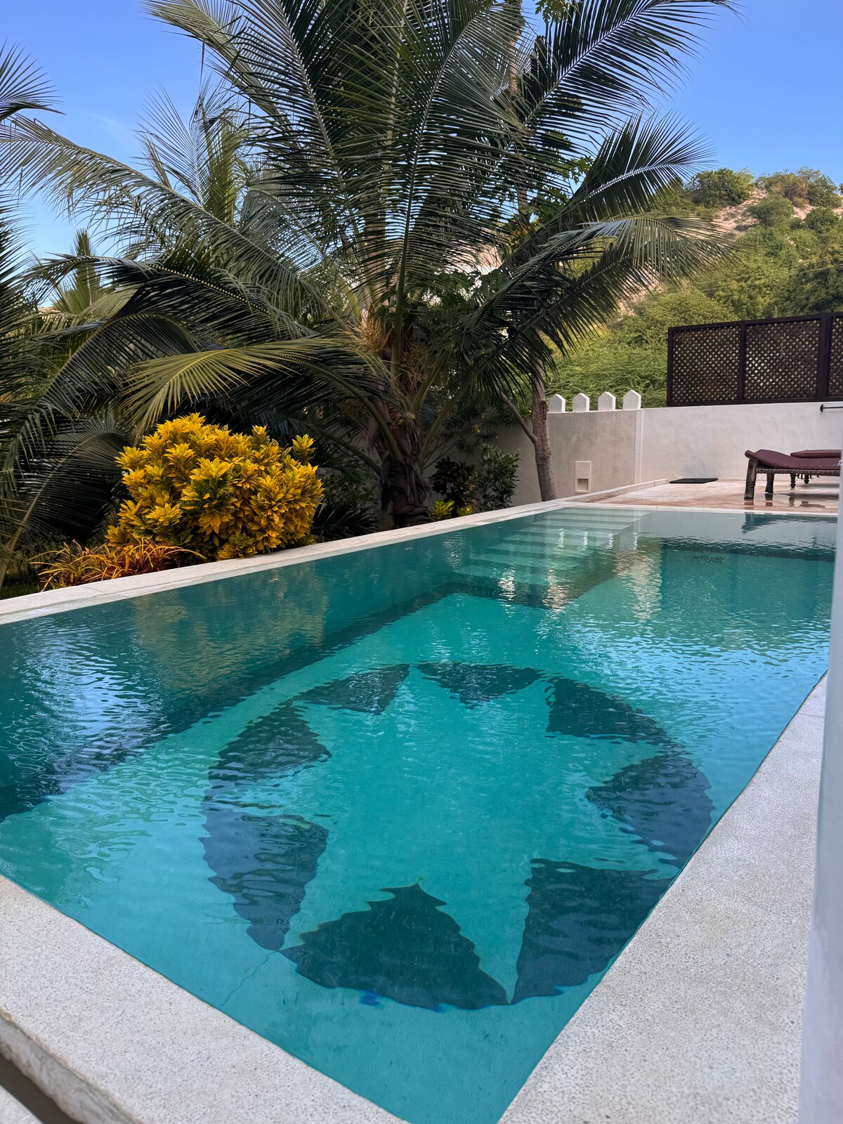 Relájate en nuestro tranquilo oasis de jardín con una piscina, vistas a las dunas y la brisa relajante a través de nuestro árbol Mbibo (anacardo). Esta casa de 4 dormitorios y 5 baños incluye un chef privado y personal. A solo 15 minutos a pie de la playa de Peponi o al otro lado de las dunas hasta Shela/Kipungani, está cerca de todo, pero maravillosamente tranquilo. Recogida y regreso al aeropuerto de cortesía incluidas. ¡Tenemos muchas ganas de darte la bienvenida a tu escapada perfecta a la isla!