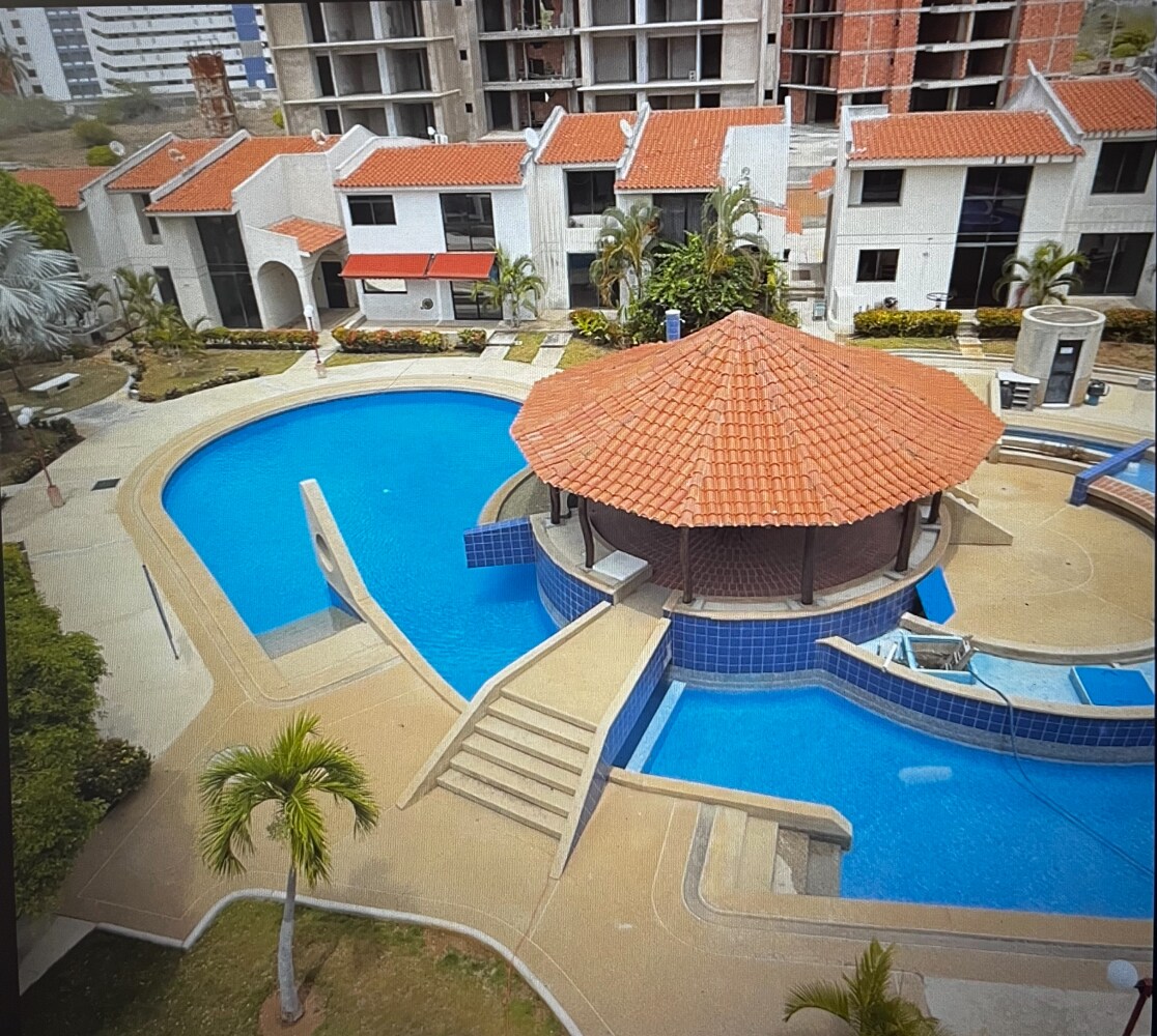 Disfruta de unas vacaciones inolvidables en nuestro encantador apto-chalé ubicado en el corazón de Costa Azul, Porlamar. A 5’ a pie del CC La Vela, a 10’ de playa Bayside y con fácil acceso a todos los servicios y atracciones de la isla. El Apto cuenta con: -2 habitaciones (1 es una ático) ambos con cama matrimonial -1 habitación con baño privado - Medio baño -Cocina totalmente equipada y lavadora -Sala de estar con sofá, hamaca y TV y Wi-Fi -Tanque de agua -Piscina -Estacionamieno