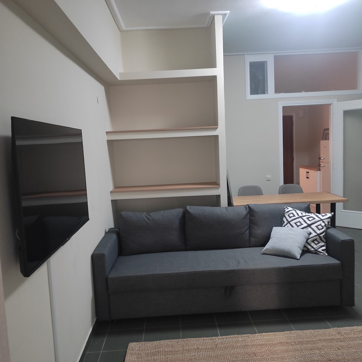 Este tranquilo y elegante apartamento céntrico en el primer piso tiene 50 m2 y está a pocos metros del supermercado/tiendas, a 220 m de la plaza central/1000 m del puerto. Tiene muchas comodidades, un dormitorio espacioso con cama doble y una televisión inteligente (43 pulgadas), balcón para tu café de la mañana, una sala de estar con un sofá de cuero y un gran sofá cama, televisión inteligente (50 pulgadas), cocina pequeña totalmente equipada y baño moderno. Aparcamiento gratuito en la calle/aparcamiento gratuito limitado en el sótano/2 cargadores de coches eléctricos a 210 m de la misma calle (no en la propiedad)