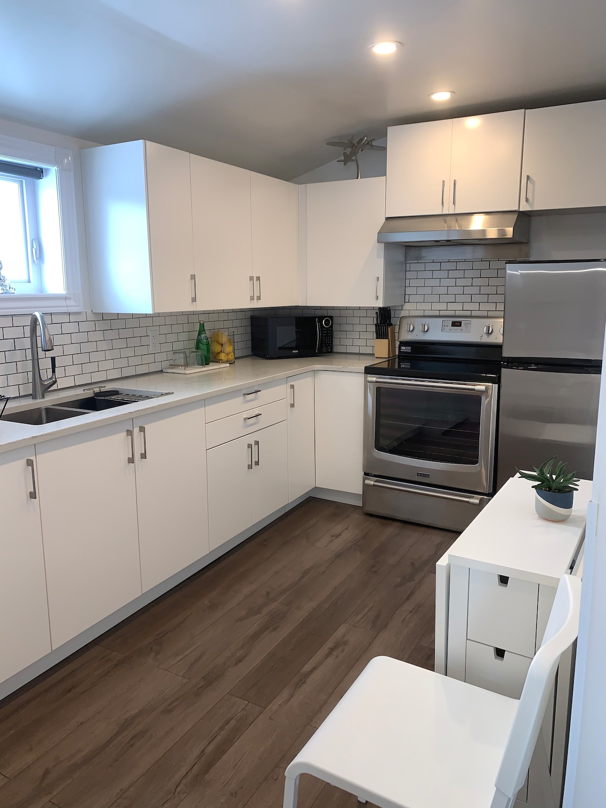Bienvenido a nuestra lujosa suite en el sótano recién construida con entrada independiente. Disfruta de tu estancia en Winnipeg y ten acceso a un enorme patio trasero, así como a parques cercanos y vistas al lago. La suite es completamente privada y ofrece un dormitorio principal enorme junto con vestidor, lavandería, cocina completa, sala de estar y una estación de trabajo. Disfruta de esta gran y luminosa suite en el sótano que está cerca de todos los servicios como parques, tiendas, centro comercial y tiendas de comestibles. Barrio nuevo, limpio y tranquilo con estacionamiento.