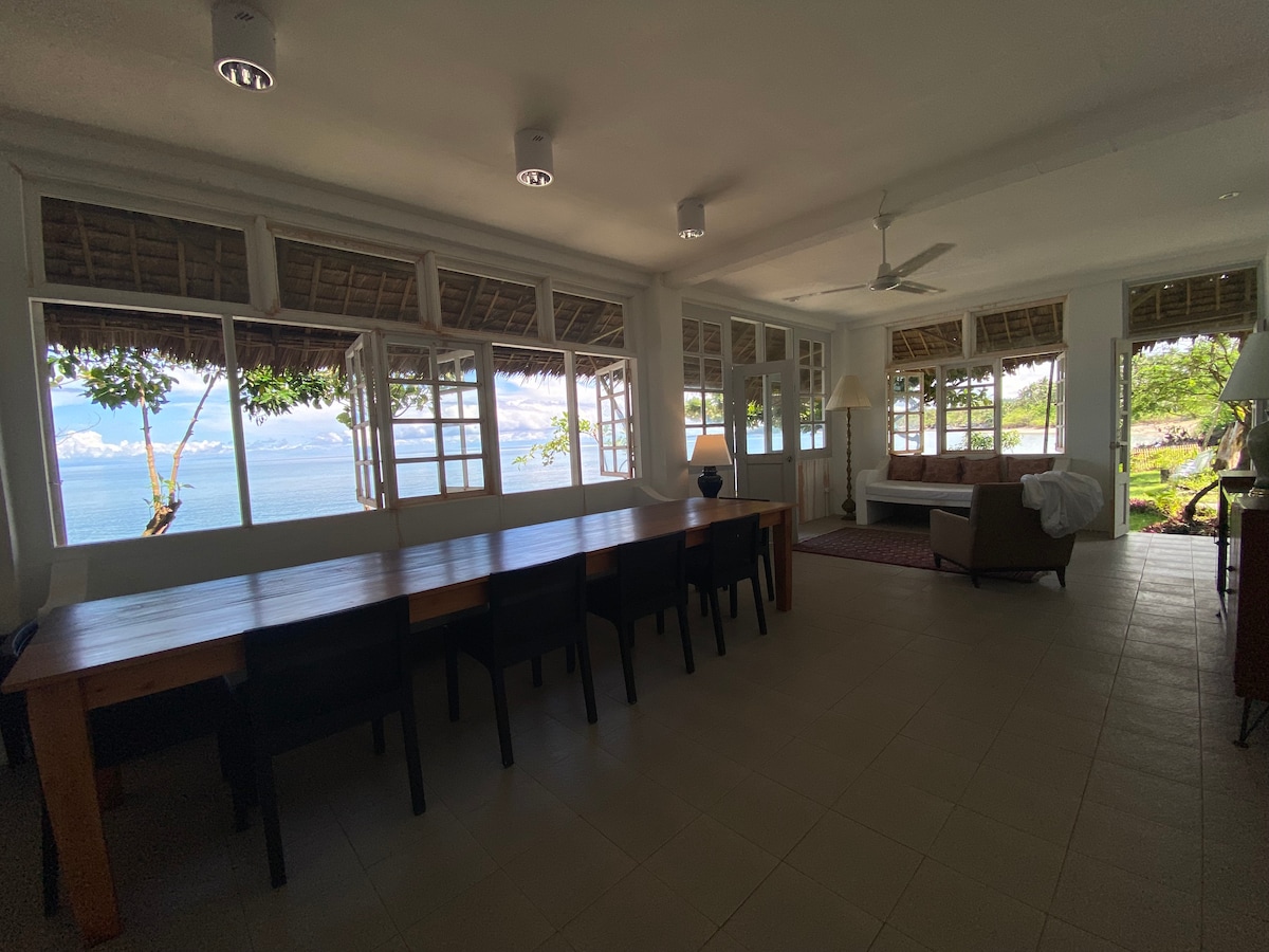 Hermosa propiedad privada frente a la playa ofrece un gran jardín, patio, 3 dormitorios totalmente climatizados (dormitorio principal y 2 dormitorios conectados en el loft del segundo piso, 2 baños, cocina, amplia sala de estar y comedor con aire acondicionado. Disfruta de vistas increíbles de Panoramic Beach House al atardecer y de relajantes hamacas, paseos en barco y otras actividades turísticas locales disponibles en Gasan y la isla de Marinduque. Esta reservación puede alojar de 1 a 12 personas. Hay piano digital y mahjong disponibles.