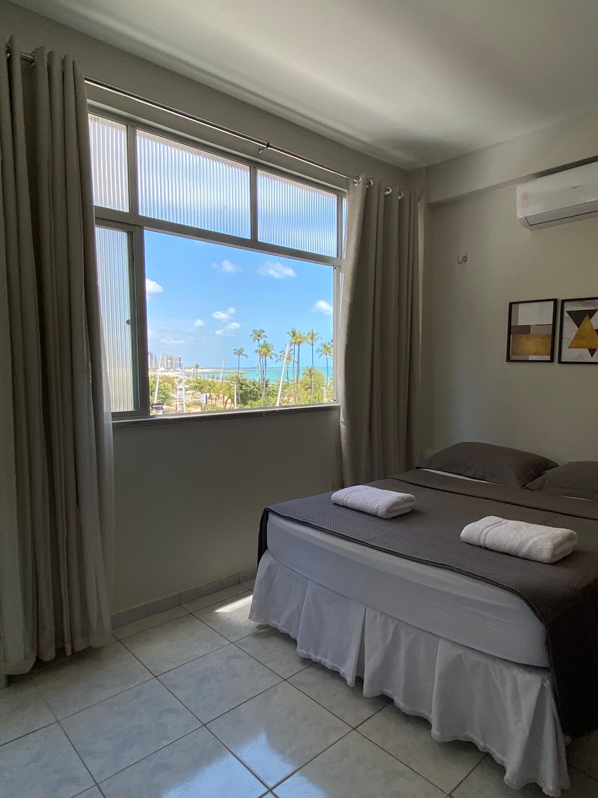 Con una cómoda suite y sala de estar con aire acondicionado y sofá cama. El apartamento tiene capacidad para 3 personas cómodamente y tiene un colchón adicional. Hay un espacio de reserva para comidas . Un pequeño apartamento práctico , moderno y cómodo, insertado en un condominio junto al mar Desde Fortaleza , X con la feria , en los Meireles . ¡Arriba! La energía es para el consumo y se paga en el momento de la salida.