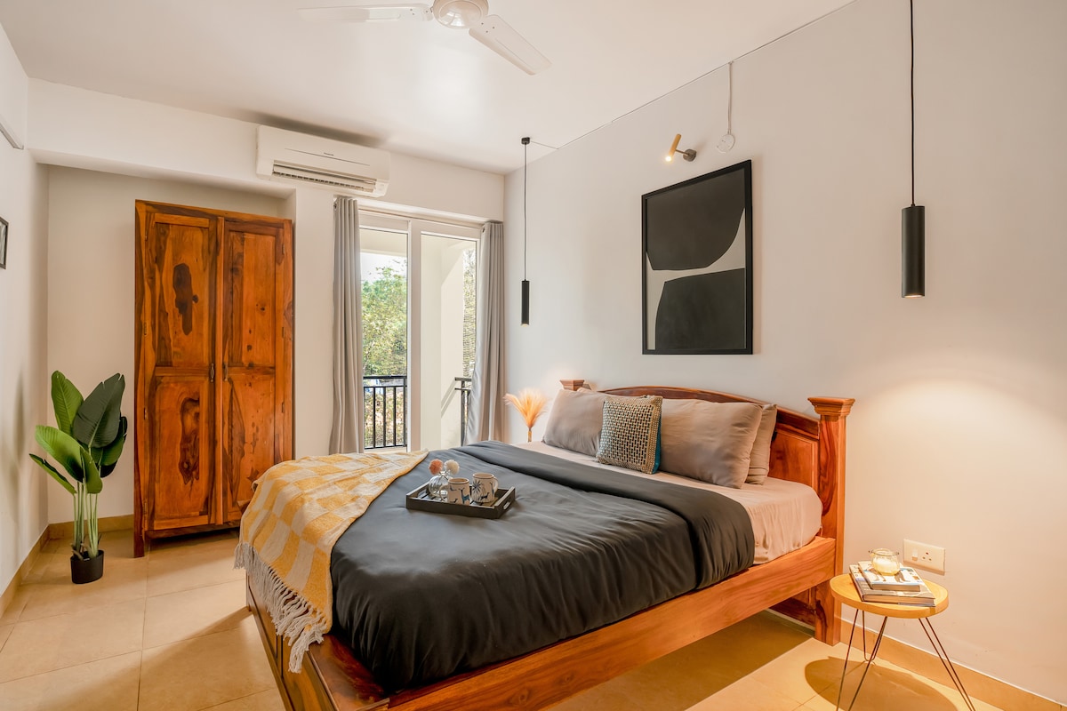 Experience upscale living at a stylish 2BHK apt. in a gated community with a common pool, located just 25 minutes from MOPA Airport. Perfect for couples, families, remote workers seeking long-term comfort, tranquility & connectivity. Easy access to spots like Thalassa, Kiki, 15 mins away. Vagator & Morjim beaches are 20 mins away Please Note: Rates are non-negotiable. We have multiple properties & we share best rates keeping in mind seasonality & amenities. Thank you for understanding.