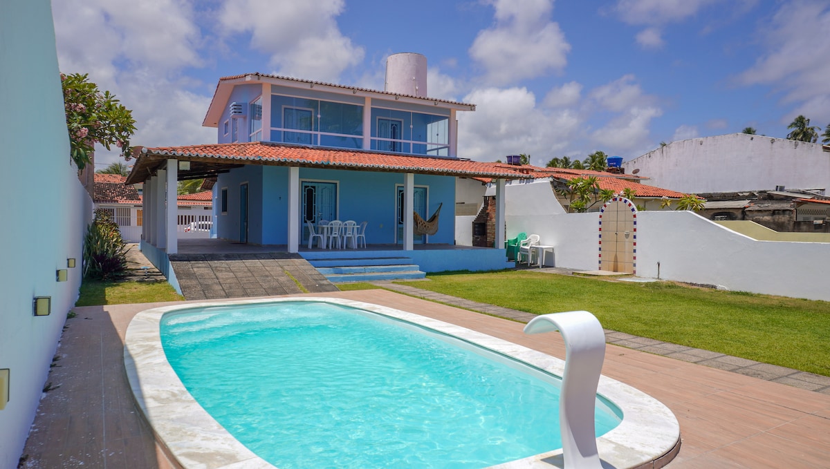 La casa no está en la playa, pero está a solo 250 metros de la playa de Peroba en Maragogi. • 3 habitaciones con baño, cama doble y aire acondicionado • Habitación con sofá y TV • La cocina está completa con todos los utensilios. • Piscina privada • Cerca de las rutas a las famosas piscinas naturales de Maragogi Tiene capacidad para alojar cómodamente hasta 6 personas en un entorno tranquilo y seguro, ideal para familias o grupos de amigos que quieran disfrutar de la playa y de las excursiones por la región.