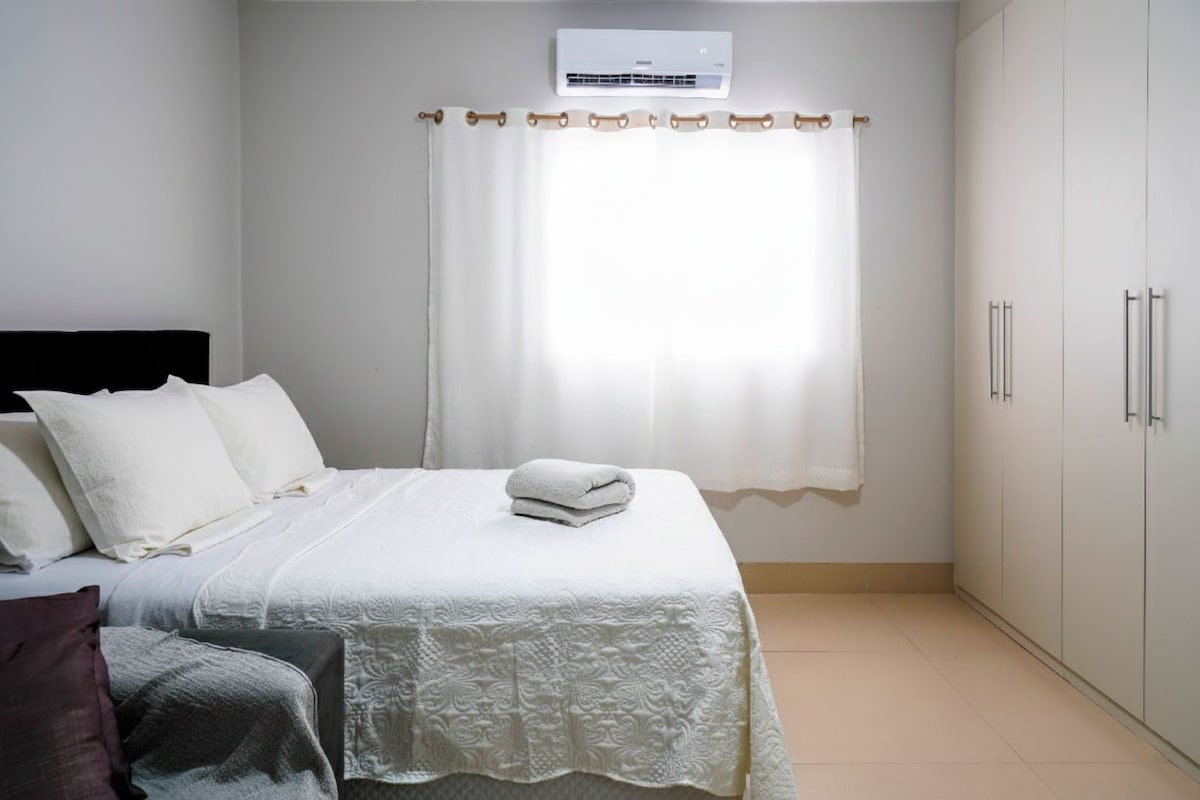 Estancia corta, decorada exactamente como en las fotos, contamos con 2 unidades en el mismo complejo para que podamos alojar hasta 14 personas . Utensilios básicos para el hogar para cocinar, como copas de vino, tazas, batidora, cafetera Nespresso, lavadora, ropa de cama, 2 albornoces y toallas . Tiene una excelente ubicación, supermercados, salones de belleza, 24 de seguridad en el condominio, el barrio es tranquilo.