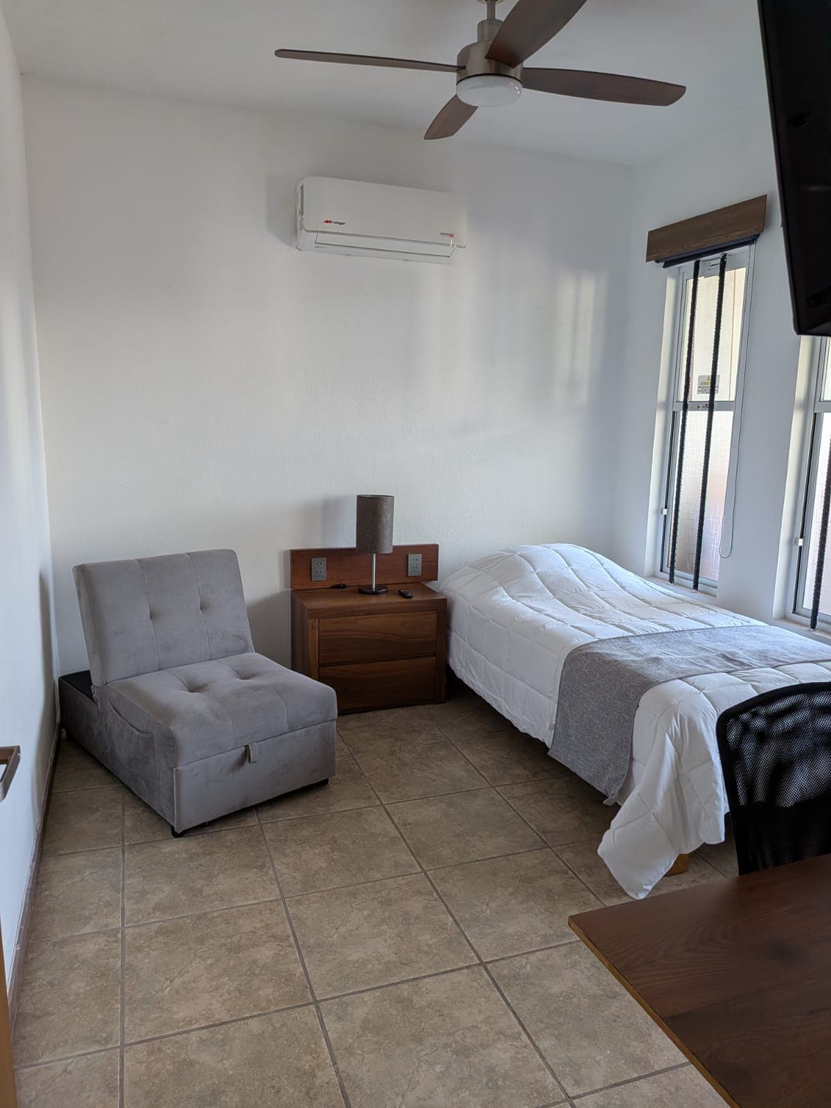 Disfruta de la sencillez de este alojamiento ubicado en el centro de vallarta a 3 cuadras del malecón , disfruta de una estancia tranquila . Puedes ver la bahía desde la terraza que es area común de 4to y 5to piso de la propiedad. Cuenta con wifi, tv, puedes preparar tus alimentos ya que cuentas con estufa y utencilios de cocina , refrigerador. No contamos con estacionamiento pero te puedes estacionar sobre la calle Argentina , la zona es segura .