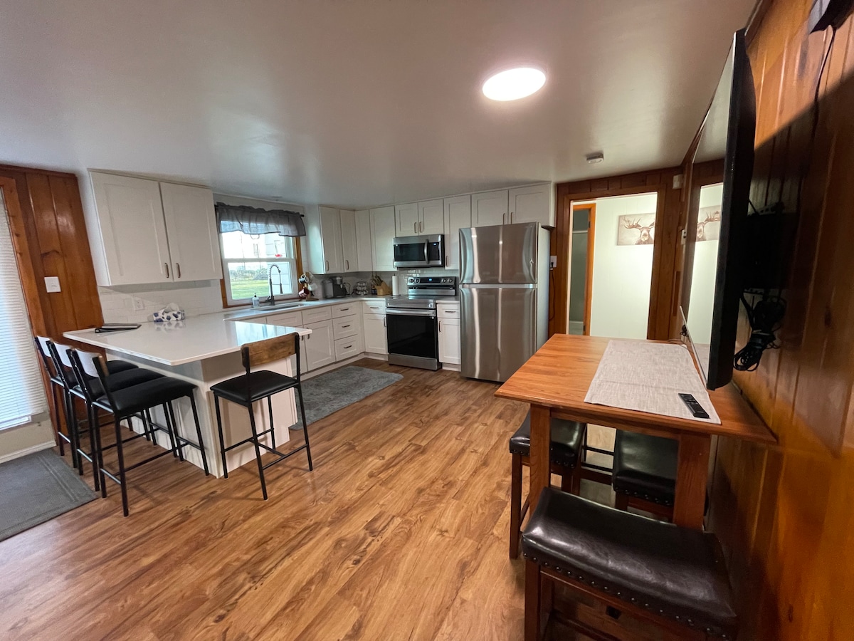 The General Store es una casa totalmente remodelada de 4 dormitorios y 1 baño, perfecta para vacaciones familiares o reuniones de grupos. Este es el lado A del dúplex frente al mar, cuenta con una sala de estar de gran tamaño con un televisor de 85", muchos juegos de mesa y una barra alta y mesa de comedor para reunirse. En el exterior, disfruta de las comodidades compartidas, que incluyen una gran terraza, una fogata, mesas, un muelle y un columpio. Dos kayaks y dos SUPs están disponibles para divertirse en el río. A solo 30 minutos de Lambeau Field con servicios de limusina locales para el día del partido.