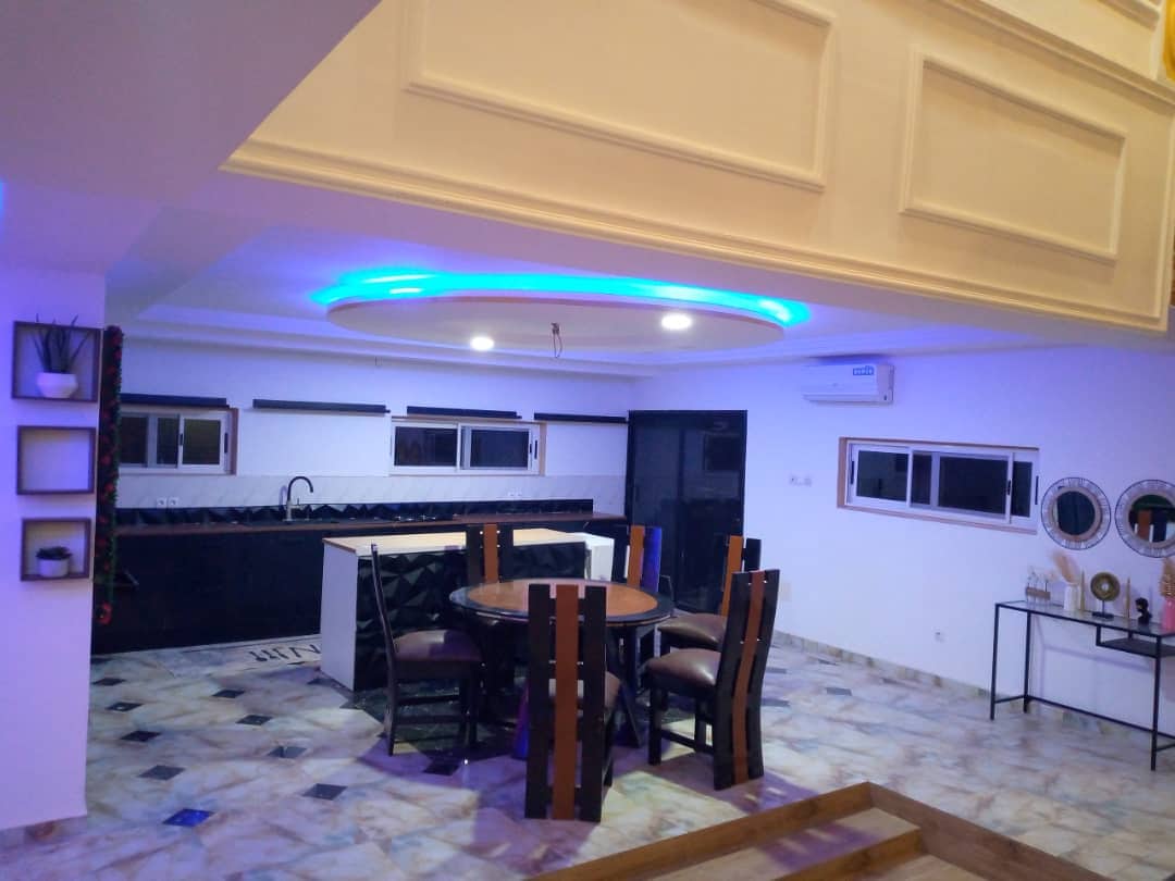 Cet hébergement élégant à DAVIE, composé d'une chambre au rez-de-chaussée et 2 chambres au 1er étage avec une cuisine ouverte sur le salon. Deux salons avec télé de 75 pouce possible d'abonnement Canal+. La villa S.A.A.L se situe à 15 min d'Agoe ou 28 min d'aéroport international Gnassingbé à Davié à coté de l'école de police un nouveau quartier sécurisé. La villa possède des caméras de surveillance, un jardin, un baby foot et une piscine . Secteur très calme