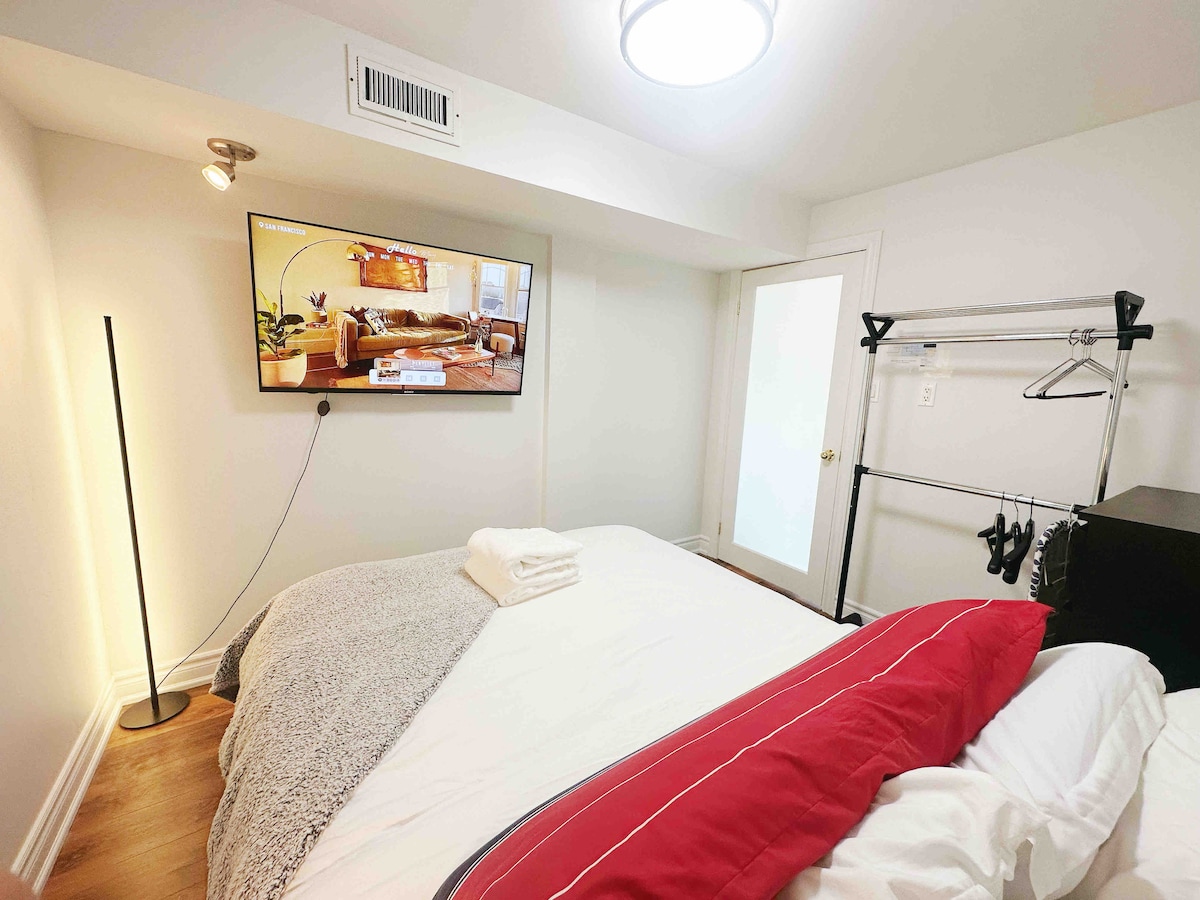 Un apartamento sótano agradable, elegante y totalmente renovado con entrada y estacionamiento separados. Un dormitorio con una cama doble y una cama individual; una cocina moderna que incluye un lavavajillas; una lavandería privada con lavadora y secadora de carga frontal LG de alta calidad, y una habitación familiar con un sofá cama y TV con Netflix y YouTube. Wifi incluido. Cerca de Markham Stouffville Hospital, Toronto Zoo y Unionville. A 30 minutos en coche del centro de Toronto. Ideal para parejas, viajeros solitarios y de negocios.