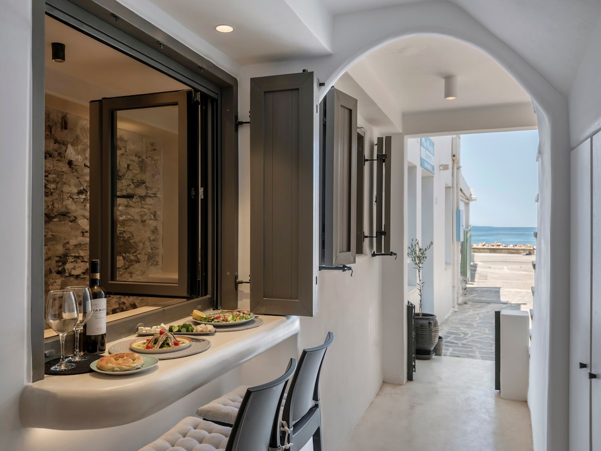 Abre las contraventanas azul marino y deja entrar la brisa refrescante, luego prepara un refrigerio en la encimera de hormigón de la cocina urbana en un refugio frente al mar. ¡Entra en la espaciosa y frondosa terraza para disfrutar de unas tranquilas bebidas al atardecer con vistas panorámicas al mar! El apartamento está situado junto a una playa de arena para nadar por la mañana y a 2 minutos a pie del centro de Naousa y su plaza principal. A pocos pasos hay tiendas, restaurantes, bares y clubes, ¡pero la zona es muy tranquila y silenciosa!