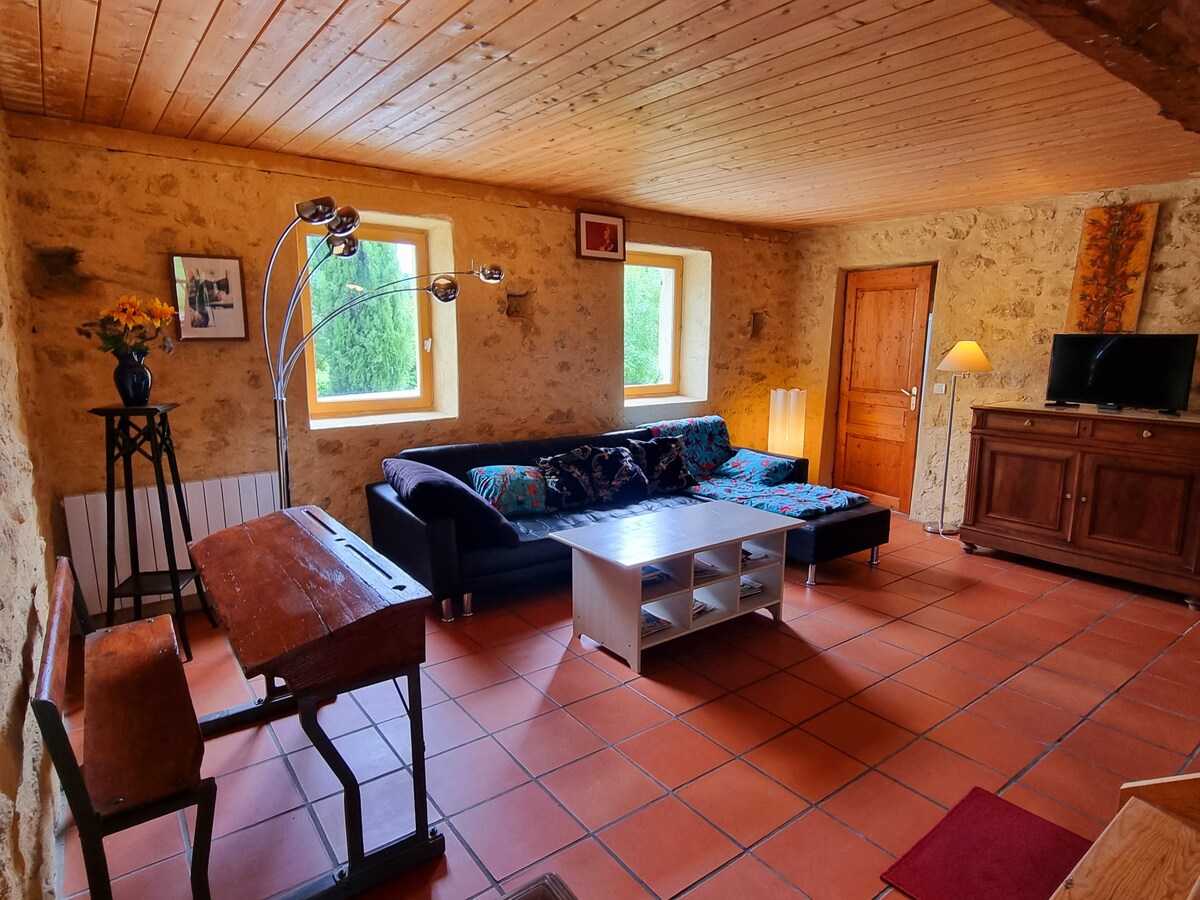 Located outside a small, quiet hamlet (altitude 800 metres) at the end of a winding road, the south-facing barn enjoys panoramic views of the mountains, and is surrounded by fields and woods - with no vis-à-vis! Entirely renovated using ecological materials, the gîte retains all the charm and authenticity of a Pyrenean dwelling, but with all the comfort of a purpose-built gite. The barn caters to everybody – couples, solos, families with children, and walkers with their four-legged friends.