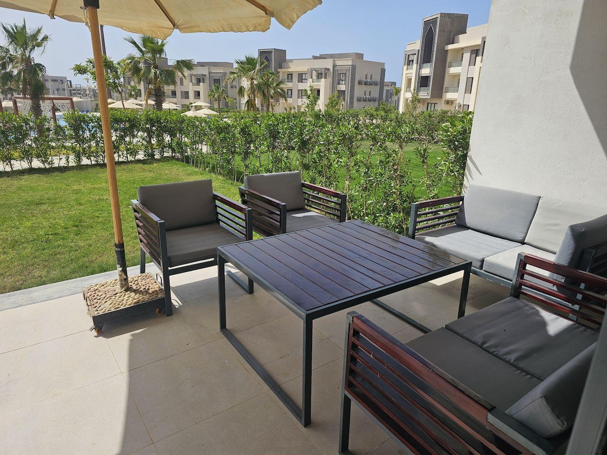 "Planta Baja" Un lugar nuevo en el increíble Almaza Bay Resort con acceso a la playa y a la piscina del hotel y con una cocina altamente equipada que incluye: Horno de pizza y microondas de convección. Horno eléctrico incorporado. Asador eléctrico. Toca la cocina eléctrica incorporada. Barbacoa. Máquina de hielo independiente. Lavadora. Lavadora de sándwiches. Máquina Nespresso. Hervidor eléctrico. Freidora de aire. Totalmente climatizada. Televisor inteligente de 55 pulgadas. Todos los utensilios de cocina disponibles. Tarjetas de toalla de playa disponibles disponibles.