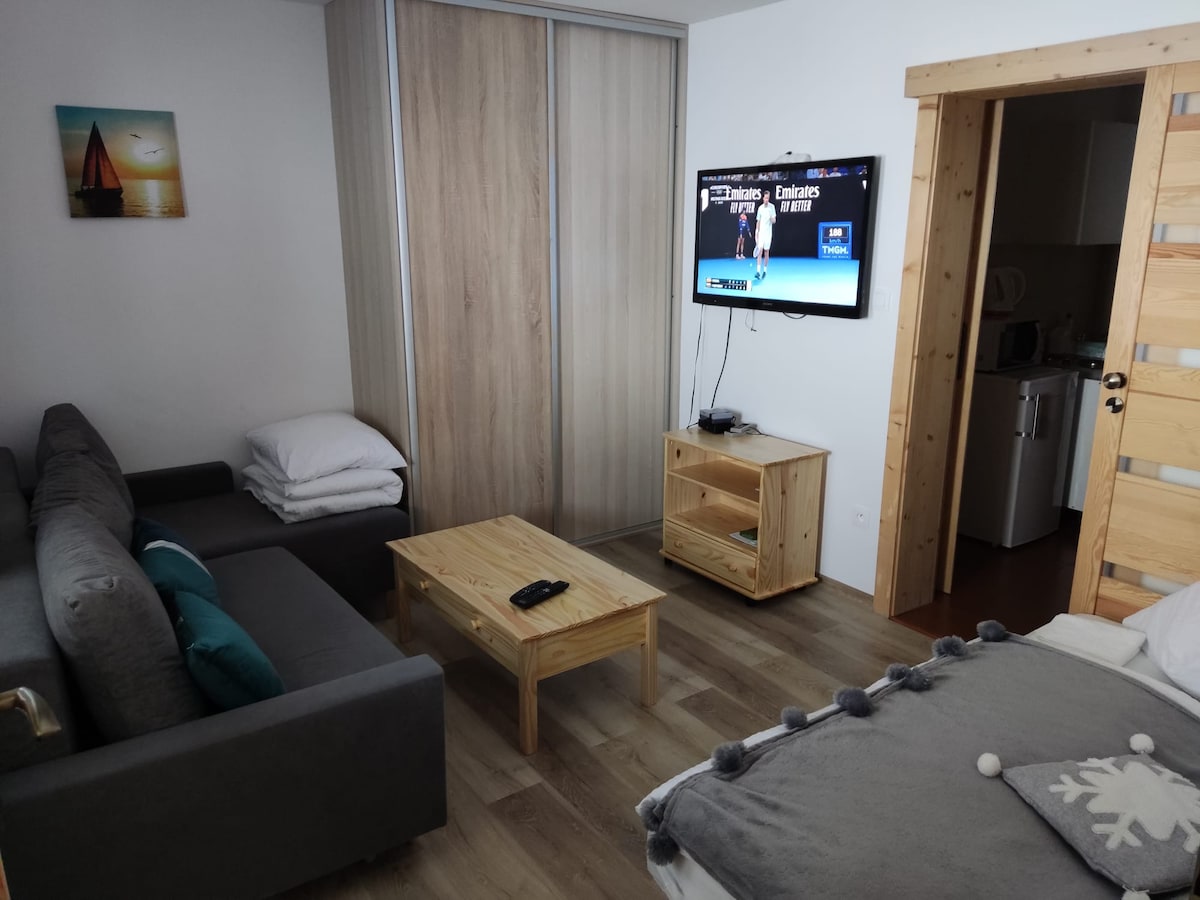 Ofrecemos alojamiento en el pueblo de Višňová. Es una casa dividida en 5 viviendas. El estudio para 2 personas tiene un dormitorio, un baño y una cocina equipada. El estudio tiene entrada independiente, wifi, TV. También hay un patio y un aparcamiento privado y seguro. El estudio tiene un aseo, una bañera y una ducha. También hay una cocina equipada con microondas, nevera y fogones. Hay una cama doble en la habitación.