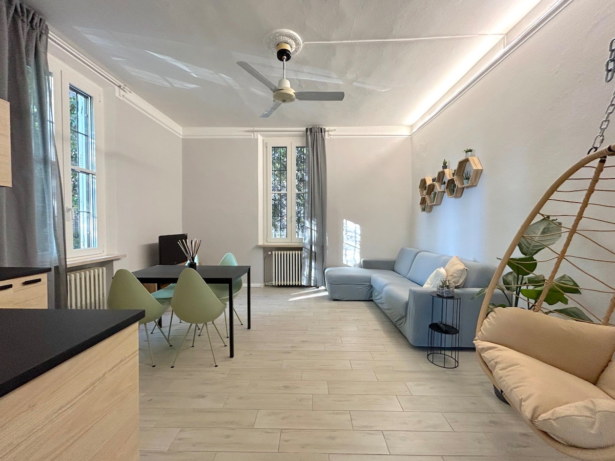 Piso con entrada independiente en una elegantecasa liberty de principio del '900. A solo cincos minutos andando de las attraciones culturales y gastronomicas del centro historico de la ciudad. Los huespedes tendran a su disposicion aparcaminto privado en el patio de la casa y bicicletas de uso gratuito.