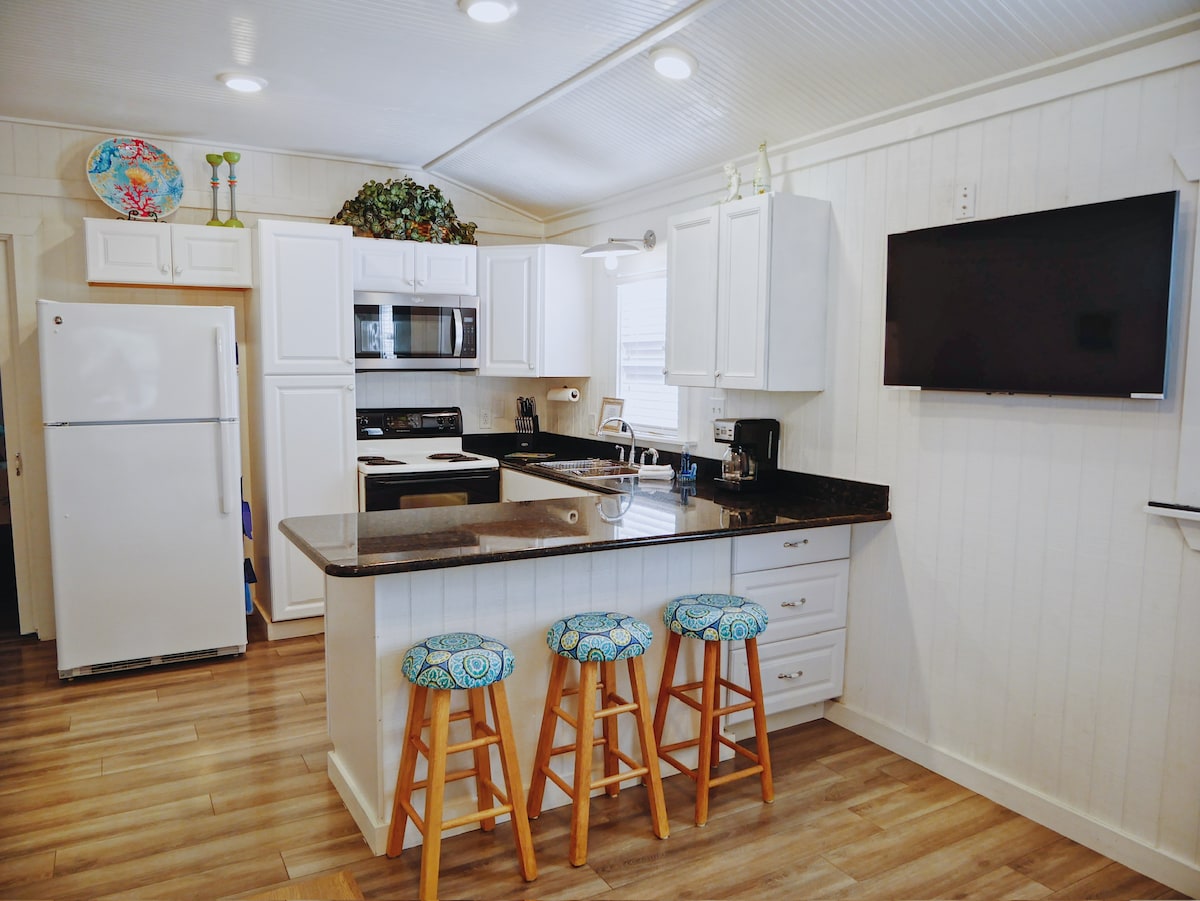 Esta acogedora casa de un dormitorio está justo enfrente del camino de las dunas a la playa. Ven a disfrutar de una escapada tranquila mientras te sientas en la terraza y observas el amanecer o el océano mientras escuchas las olas estrellarse en la playa. Este alojamiento cuenta con una cocina básica con horno vintage. La casa también cuenta con una mesa de picnic debajo de la casa para comer a la sombra.Disfruta de la hamaca y el columpio del porche debajo de la casa también. 2 sofás cama ofrecen la capacidad de 2 camas tamaño queen más.
