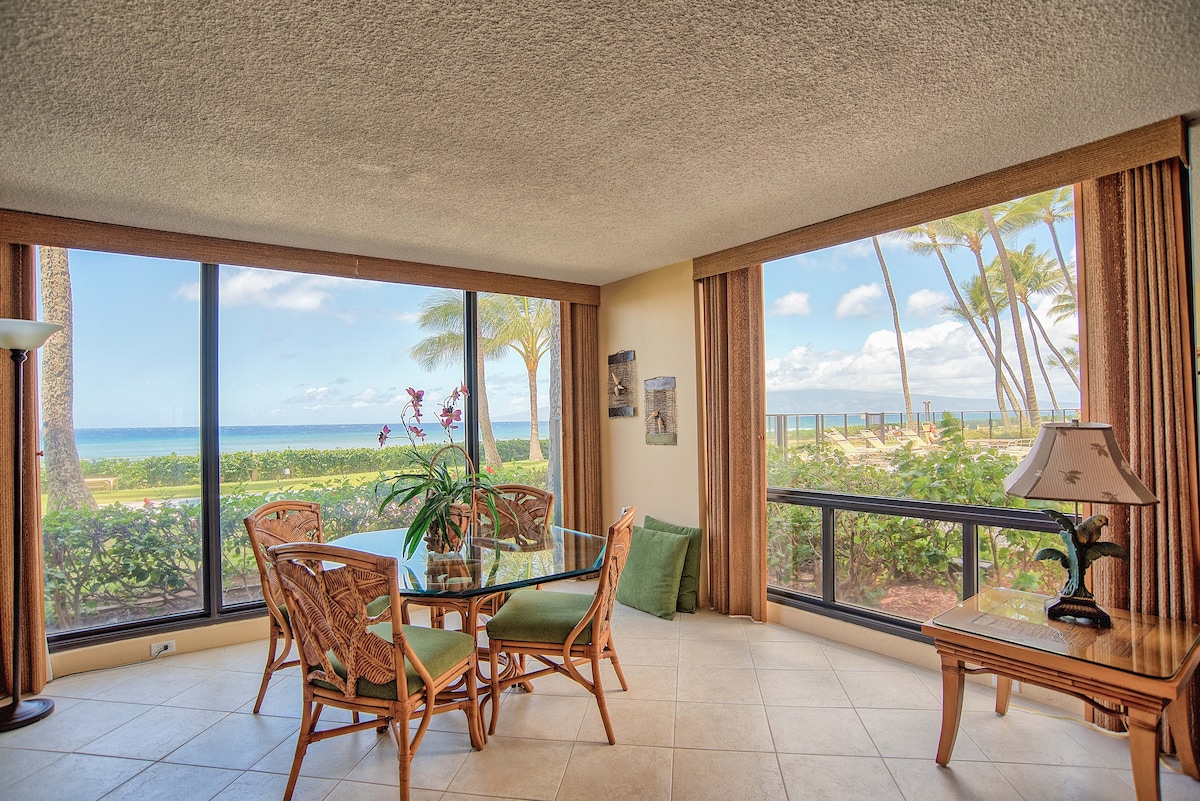 Suite de esquina extragrande de 1 dormitorio frente al mar, en la planta baja, con capacidad para 4 personas. ¡Camina directamente a la playa, la piscina y las barbacoas! El Mahana se encuentra en la playa de Kaanapali. Ofrece la mejor combinación de privacidad, comodidad y servicios para tus vacaciones perfectas en Maui. Tanto si sois una familia de 4 personas, como si estáis de luna de miel o tenéis adultos con necesidades especiales, esta hermosa suite os espera.