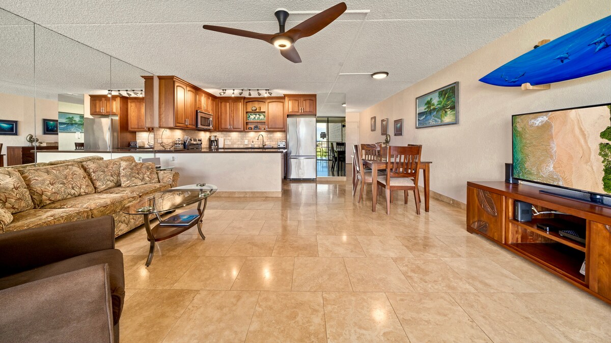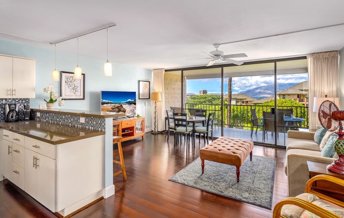 Luana Kai D203 es un sofisticado condominio de centro vacacional de 2 dormitorios y 2 baños con capacidad para cuatro huéspedes en una ubicación privilegiada frente a la playa. Disfruta de 1,130 pies cuadrados de espacio de vida de lujo. Disfruta de las espectaculares vistas panorámicas al mar y a la isla exterior desde el gran lanai.