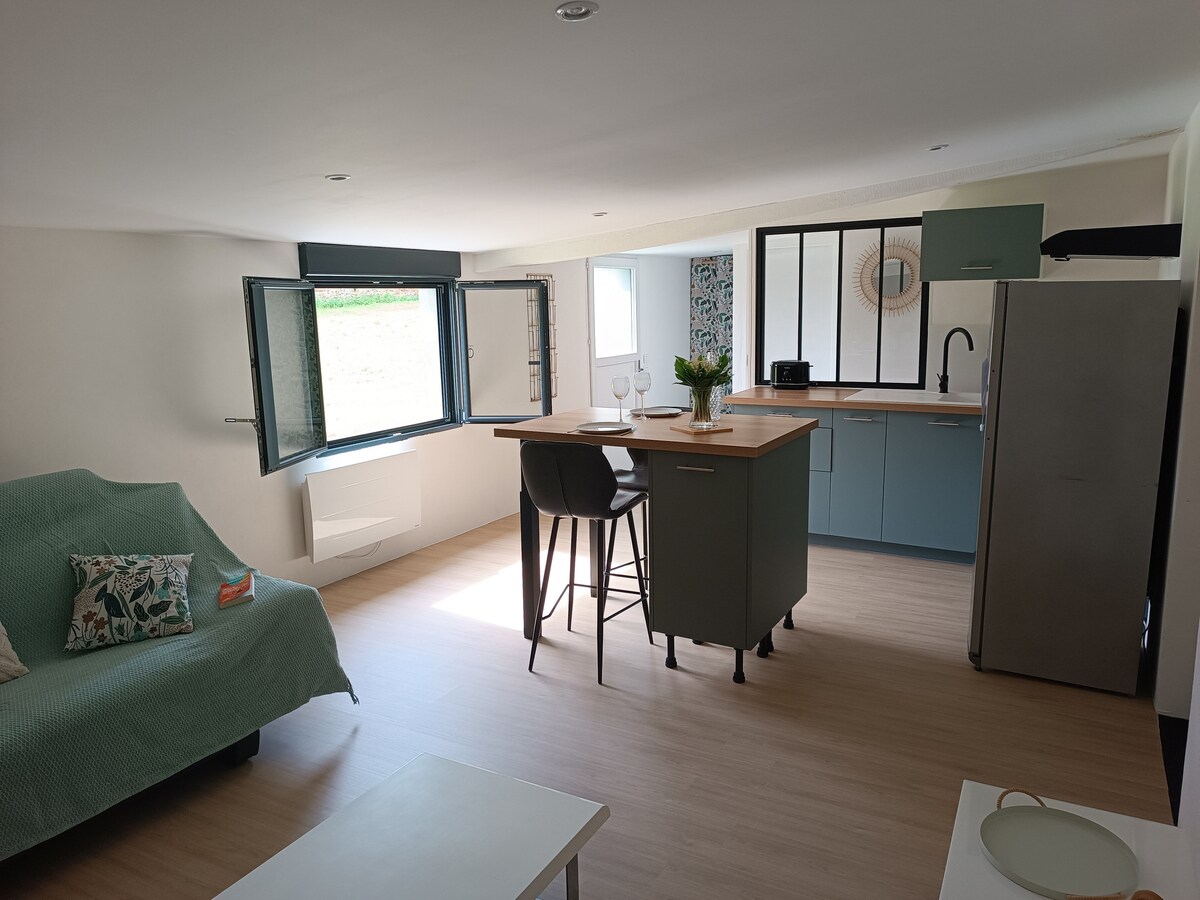 Bienvenidos a nuestras viviendas! El estudio (15 m²) da a nuestro jardín, usted estará tranquilo. Está equipado con una cocina y un baño con ducha. El techo es bajo (1,95 m). El acceso es a través de nuestro jardín. Dependiendo de la temporada, los productos del jardín y los huevos frescos le estarán esperando. Está a 5 minutos a pie del Parque Oriental y del Castillo Colbert. También está cerca de: Puy du Fou, Jardin de Camifolia, Terra botanica, Futuroscope, el mar y el Loira... A pronto Marie y Damien
