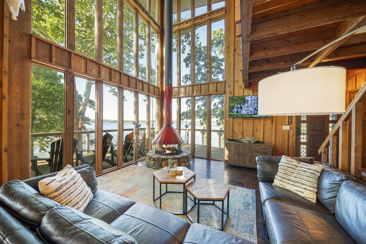 Bienvenido a Cardinal Cabin, su refugio de troncos con acabado de diseñador ubicado en los árboles sobre el lago Hudson en Pryor, OK. Disfruta de un café mientras los ciervos pasean, sumérgete en la bañera de hidromasaje bajo las estrellas centelleantes o comparte historias y s'mores alrededor de la hoguera. Tranquilo y lleno de encanto, este acogedor refugio de 2 dormitorios y 2 baños es la vida en el lago de Oklahoma en su mejor momento.