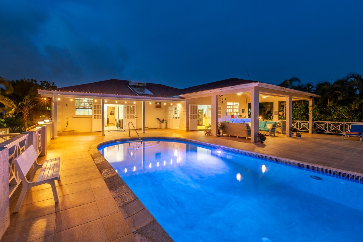 Una hermosa villa de planta abierta que disfruta de brisas, increíbles vistas al mar y puestas de sol. La amplia terraza de la piscina tiene una gran piscina, tumbonas, parrilla, bar y sala de estar al aire libre. Hay un cenador aislado con hamaca en el jardín y una puerta trasera se abre a un camino que conduce a la playa. Puedes ir caminando hasta el pueblo pesquero Six Mens, donde se vende pescado fresco, tiendas de ron locales, bares y lugares de comida, así como el restaurante Fish Pot. En Speightstown hay supermercados, bares y restaurantes. Holetown está a 20 minutos.