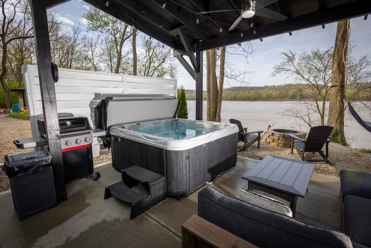 Bienvenido a nuestro refugio rústico totalmente renovado ubicado en el pintoresco río Ohio. Esta casa de 3 dormitorios y 2 baños se encuentra en 10 acres de impresionante propiedad frente al río. Disfruta pescando y navegando desde la puerta y luego relájate en el acogedor jacuzzi. Reúnete alrededor de la acogedora fogata mientras contemplas las tranquilas vistas. Perfecto para los amantes de la naturaleza que busquen una escapada inolvidable.***El número de huéspedes y mascotas afecta los precios. Asegúrate de tener el número correcto de huéspedes y mascotas antes de reservar.