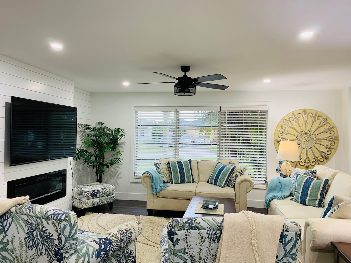 This is the ultimate getaway for our guests. Yes…. you’re going to have an entire house for yourself . Feel free to enjoy 2 bedroom / 2 bathroom house with a Florida room, plus outside patio with gazebo(BBQ) and large back yard. Our newly renovated retreat is in the perfect location that is close to the beach, near all the best restaurants, and has all the amenities you will need for a breezy family vacation. Free L2 EV charging in the garage! Cleaning fee only $49.