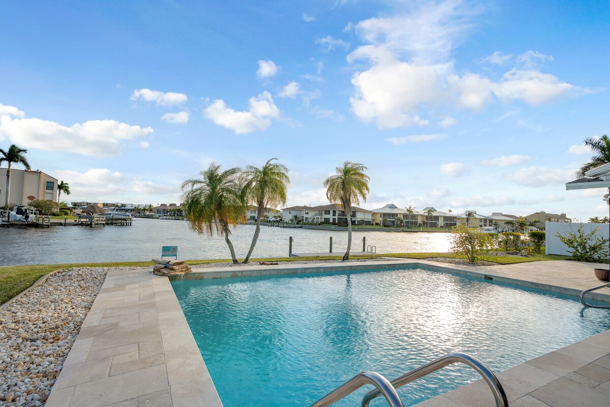 Esta espectacular casa de 2358 pies cuadrados de 2358 pies cuadrados en primera línea de playa de Cape Coral superará tus expectativas con sus lujosas renovaciones y abundantes servicios. ¡Ubicada en un barrio tranquilo, pero a pocos minutos de tiendas, supermercados, restaurantes y playas! Disfruta de un gran lanai con piscina climatizada y spa, TV exterior y parrilla incorporada. Incluye kayaks, cañas de pescar, artículos de playa, cochecito, estacionamiento privado en la entrada, wifi e impresora. Acceso al golfo con muelle para barcos.