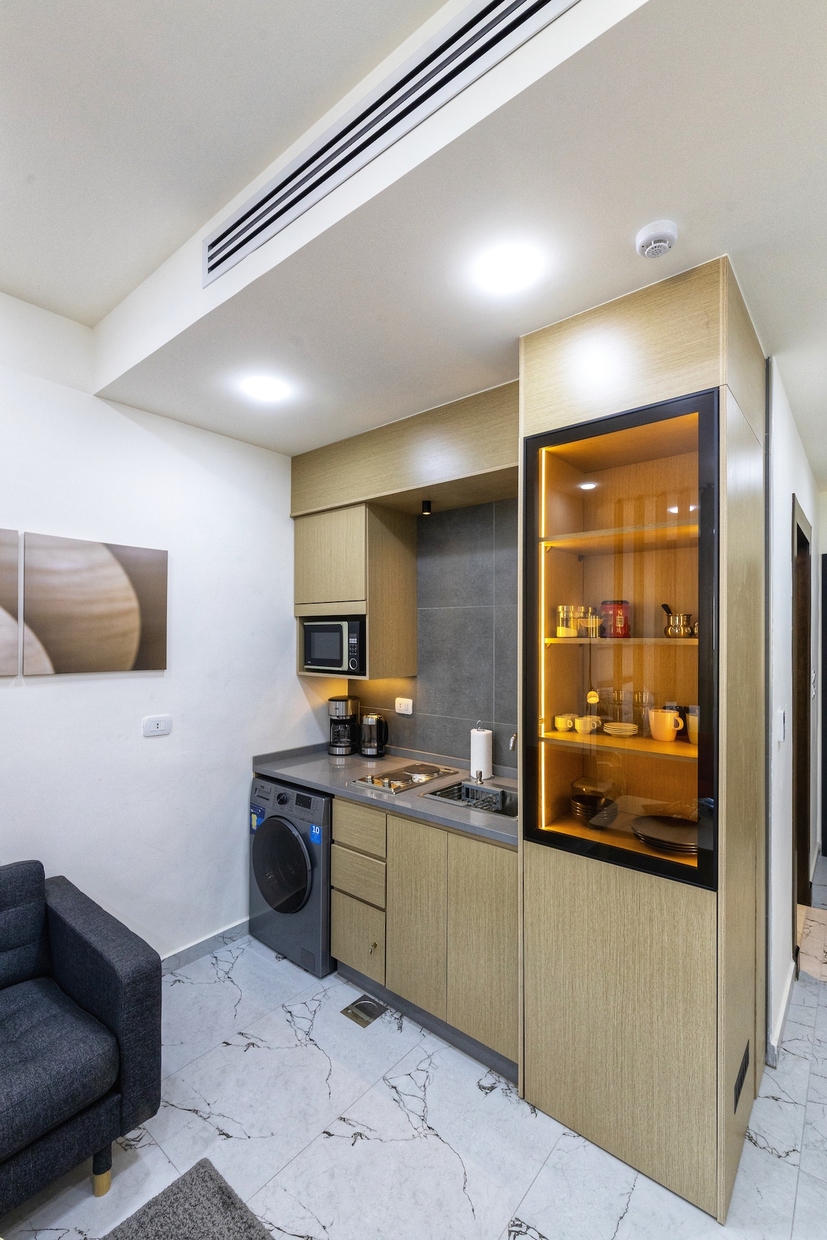 Stay in a fully renovated, stylish one-bedroom apartment in the heart of Sweifieh, Amman. Located on the first floor with keyless self check-in, it's perfect for solo travelers or couples. Enjoy a modern living space, full kitchen, luxury bathroom, glass-covered terrace, king-size bed, fiber internet, and smart 55" TV with VOD. Steps from top shops, malls, cafes, and main roads. Comfort, privacy, and convenience - your home in Amman!