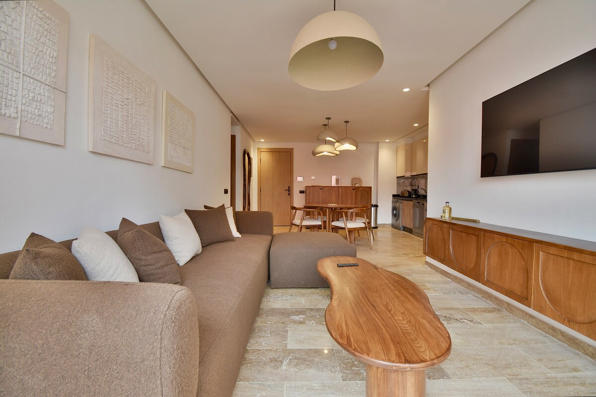 Un appart tout confort - Résidence neuve avec ascenseur et accès sécurisé - Appart fonctionnel, moderne et joliment décoré - Clim, Wi-Fi, TV ... pour un séjour agréable 🏊♂️ Les atouts de votre séjour - Piscine en rooftop avec vue dégagée, idéale pour vous détendre après vos journées de visite - Quartier central et animé, parfait pour découvrir Marrakech - A proximité immédiate des commerces, et lieux de vie 📌 À savoir Nous respectons la législation marocaine (voir règlement intérieur).