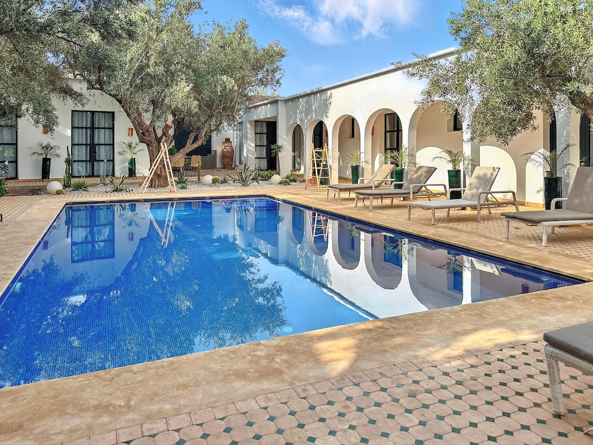 Villa moderne avec piscine sans vis à vis et jardin offrant une vue imprenable sur le célèbre Atlas Marocain. La villa est entièrement meublée, elle est composée d'une cuisine équipée, d'un salon intérieur et d'une salle à manger ainsi que de 5 chambres avec leur salle de bain. A l'extérieur une belle terrasse avec son salon vous attend pour profiter de la piscine et du jardin. Tout est inclus : climatisation, piscine, wifi, TV, linge de bain, linge de lit, ménage...