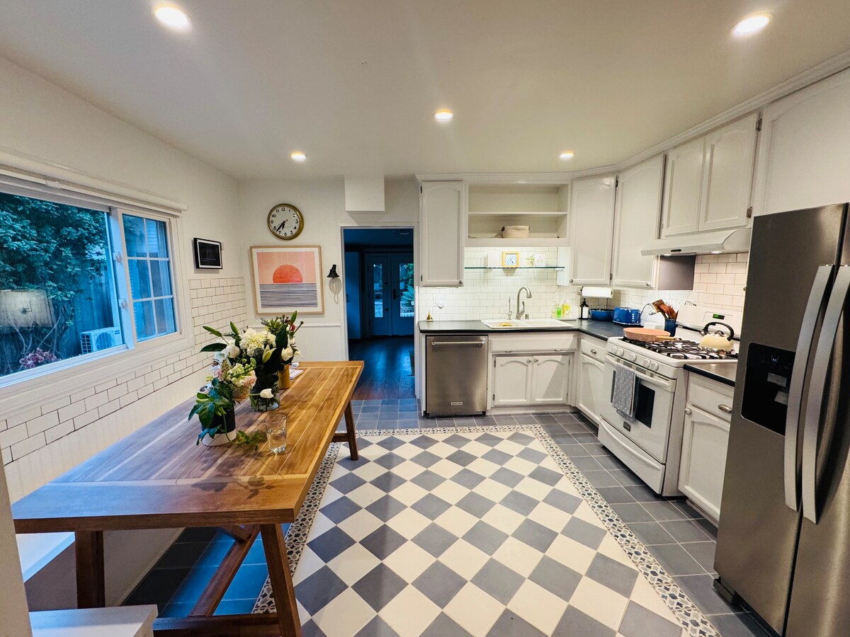 Perfecta para una escapada romántica o una reunión familiar, esta acogedora casa está situada en una calle arbolada entre cañones. Relájate en el gran patio trasero o cena bajo un encantador cenador verde. Captura la belleza del momento rosa del valle de Ojai con tu vino o champán favorito. Villa Nova es una casa de tres dormitorios y dos baños completos diseñada con muebles de época de Monterey.