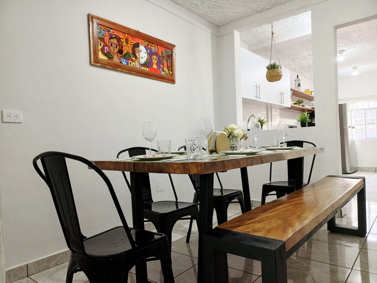Disfruta de una experiencia con estilo en San Salvador con este alojamiento céntrico. Al realizar tu reserva, obtienes acceso inmediato a supermercados, restaurantes, el Centro Histórico, centros comerciales y hospitales. Con capacidad de hasta 4 huéspedes. Ofrecemos 2 habitaciones con un total de 3 camas (2 individuales y 1 queen), las habitaciones y sala poseen A/C; la cocina esta totalmente equipada. Contamos con parqueo gratuito, seguridad las 24H y cámara de seguridad. Internet 100MB.