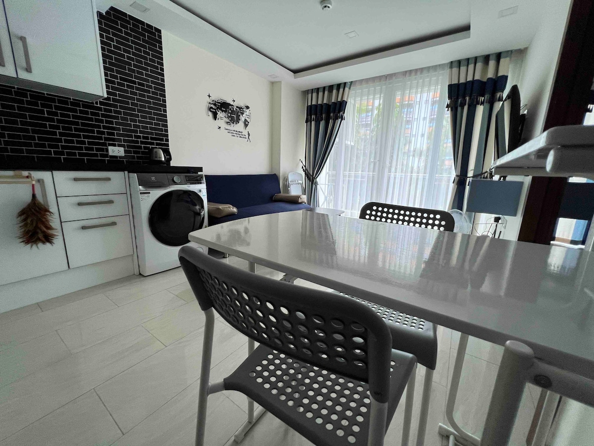 Situado en UnitD412,381,Naklua 12,Pattaya,Chonburi,20150. A solo 100 metros de la playa más hermosa, puedes disfrutar del océano y del abrazo del sol en cualquier momento. Hay tres piscinas en la planta baja, debido a la sombra de las plantas verdes, nadar todo el día es muy cómodo . Caminar a 300 metros hasta el Santuario de la Verdad es un parque muy hermoso. El apartamento está muy bien decorado.