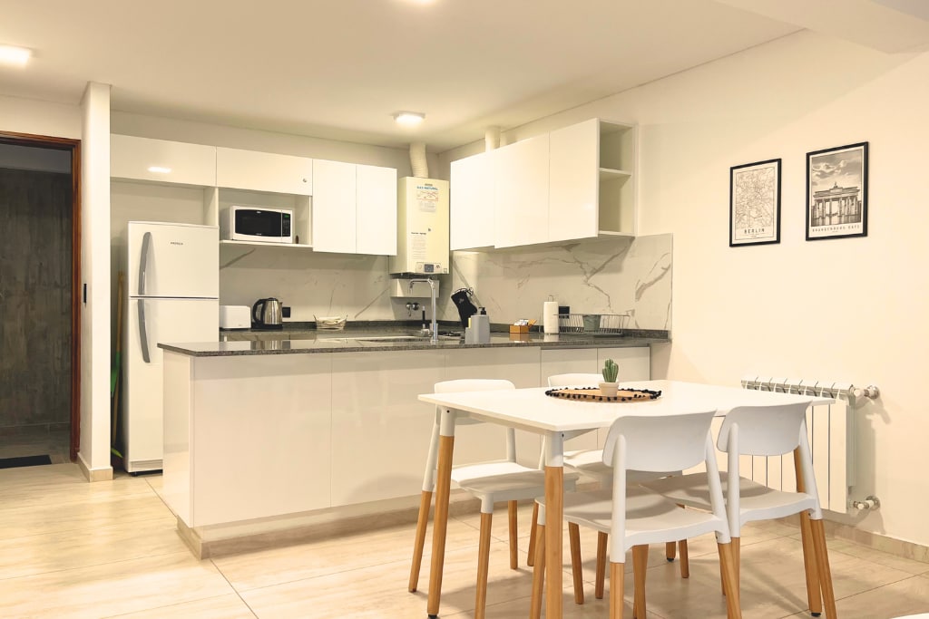Relájate en este divino espacio a estrenar, renovado a nuevo con estilo, calidad y diseño. Óptima ubicación en un barrio residencial céntrico tranquilo y vegetado. Destacamos su cercanía al gran parque San Martín, ideal para ejercitarse, a gran avenida gastronómica y mercados. Sommier king marca Simmons de alta gama, para un óptimo descanso En un segundo piso con balcón. Todos los ambientes tienen ventanas con vistas Bicis Self check in con código único Climatizado con 2 aires split frío-calor
