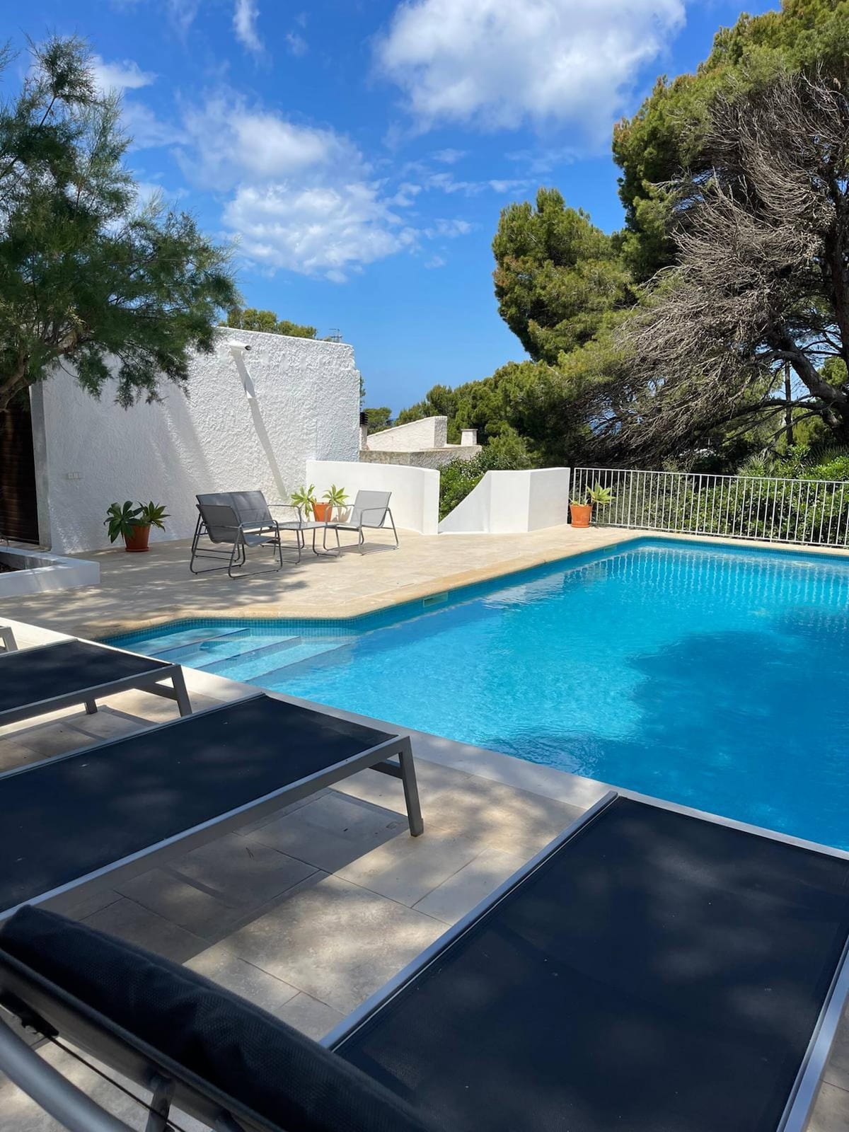 La casa tiene jardín con piscina privada y vistas al mar, espacio para aparcar un coche y una gran terraza con hamacas para disfrutar del sol. La casa tiene capacidad para 8 personas, 4 dormitorios dobles. La propiedad cuenta con 2 cuartos de baño completos, un salón comedor, cocina equipada y porche cubierto. Las vistas al mar y su cercanía a los principales puntos de interés de la zona, la convierten en la mejor opción para disfrutar de unas vacaciones en Menorca