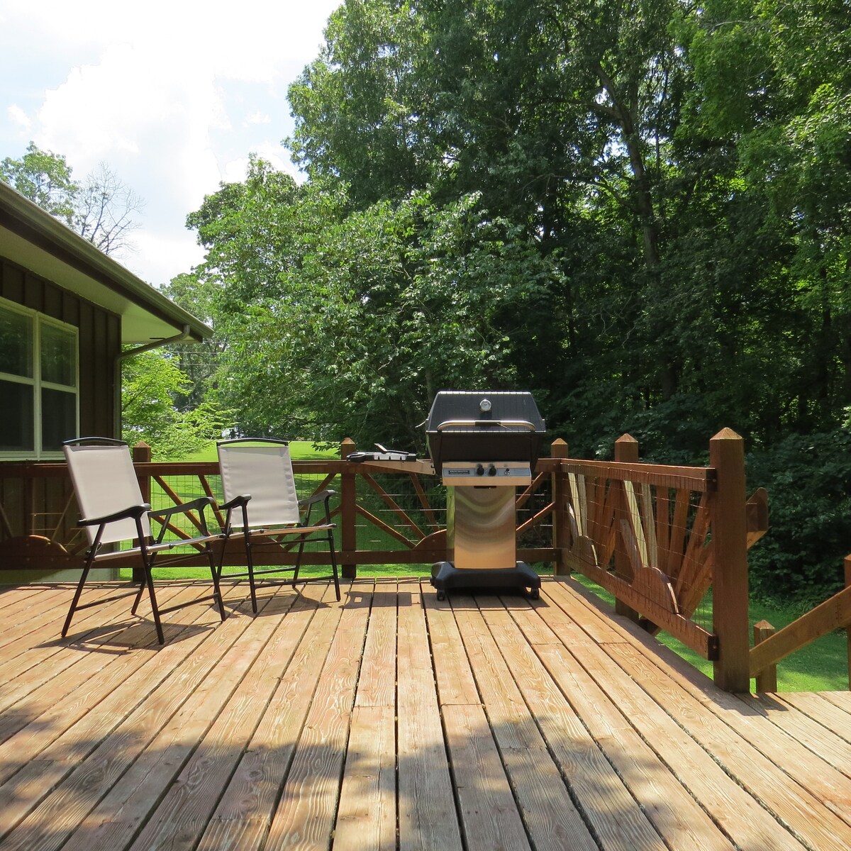 Una gran vista del bosque te espera desde la ventana de la cocina rural y desde la terraza trasera. La casa de 2 dormitorios tiene un ambiente cálido y acogedor y tiene capacidad para 6 personas. Colinda con el límite del parque estatal Meramec, que tiene rutas de senderismo, acceso al río, pesca y flotación. Muy cerca se encuentran las cavernas de Meramec, la cueva de Onondaga, anticuarios, restaurantes, cervecerías, bodegas y pequeños zoológicos. A 1 hora en coche se encuentra St. Louis, el sendero Katy para ir en bicicleta. Disfruta de una estancia relajante y cómoda donde se ven ciervos con frecuencia.