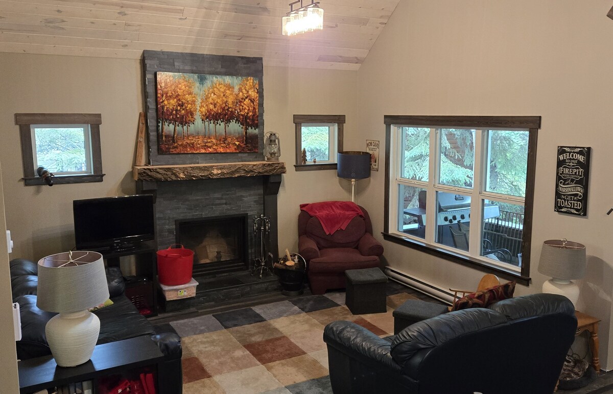 This spacious cabin offers comfort and charm, just a short walk from the beach. With a playground and pickleball court right across the street, and a boat launch just down the street, there’s something for everyone to enjoy. Whether you're roasting marshmallows, relaxing on the deck, setting out on the water, or heading out for a sunny beach day, this cabin is the ideal place to make lasting memories. If you are there in the winter we can provide you an ice fishing shack.