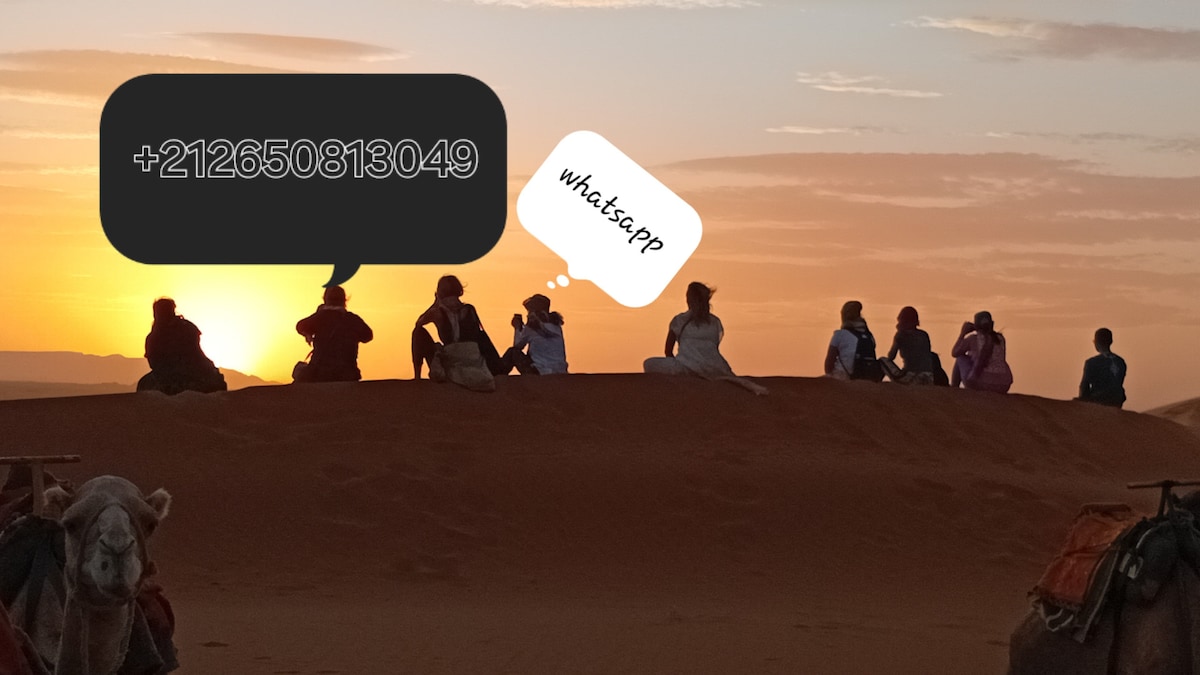 We have rooms for you if you need to leave your luggage etc..(bcz to the desert you need just a small bag) - Free Parking at my House - Camel ride for about 1 hour to see sunset then you go to camp to have tea Dinner overnight berber tents bonfire with berber music and songs by locals guides . - In morning ATV Quads (optional for extra) to see sunrise, Sandboarding then back to have breakfast at house.