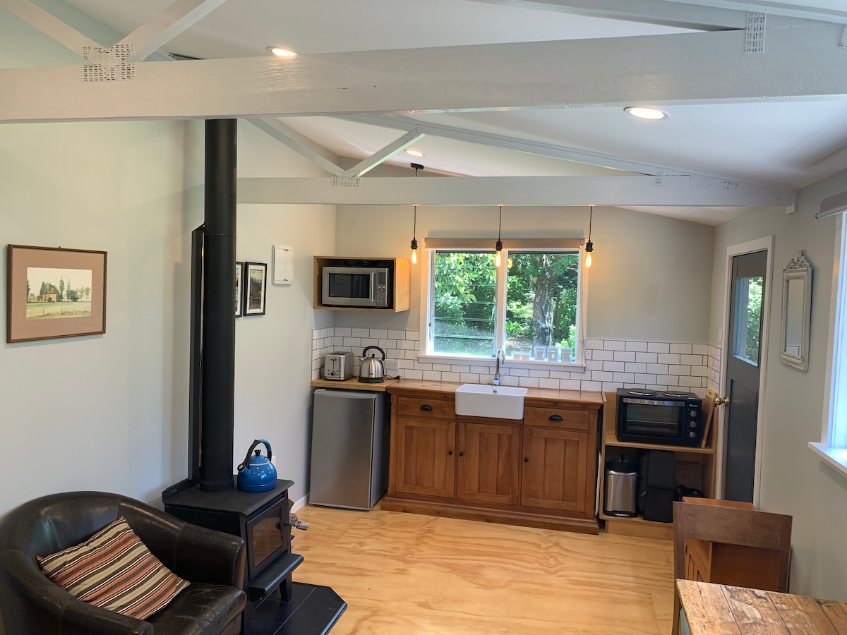 Well appointed, self catering cottage in the Canterbury foothills. Set on our 10 acre lifestyle block with our three pet steers and very friendly chickens! Fast wifi! Wake up to mountain views and enjoy a coffee by the fire. Perfect for a peaceful getaway away in the country. Oxford's Dark Sky rating means we have amazing star gazing! Only 45 min to Castle Hill and Christchurch. Relax and unwind, feed the chickens, explore the forest, enjoy our little piece of paradise!