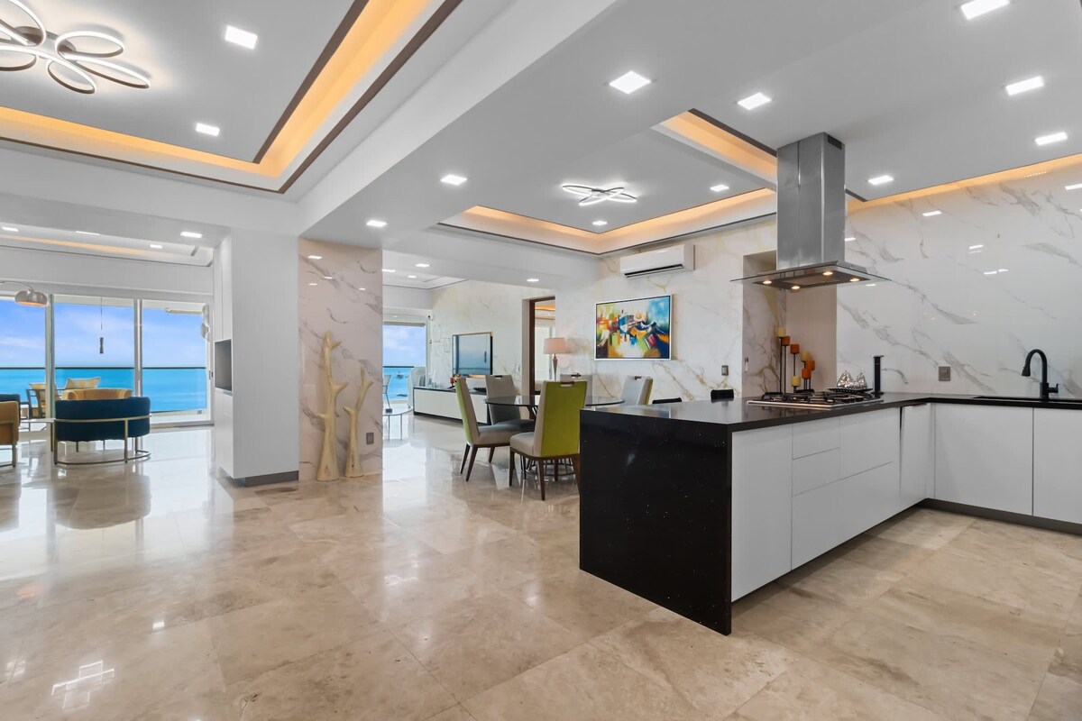 🌊☀️🏖️ Condominio moderno frente a la playa en el exclusivo GRAND VENETIAN. Diseñada para una relajación total, con impresionantes vistas al océano Pacífico y el sonido de las olas justo en su balcón. Ubicación y estilo de vida 📍 Ubicación privilegiada: a 10 minutos del aeropuerto y del centro de la ciudad (Malecón). Restaurantes: carnes, mariscos y restaurantes italianos justo al otro lado de la calle. Compras: A pocos pasos de La Isla Shopping Village y Plaza Península (Starbucks, bancos, boutiques). Supermercados: Chedraui a pie; Costco y La Comer a solo 2 km.