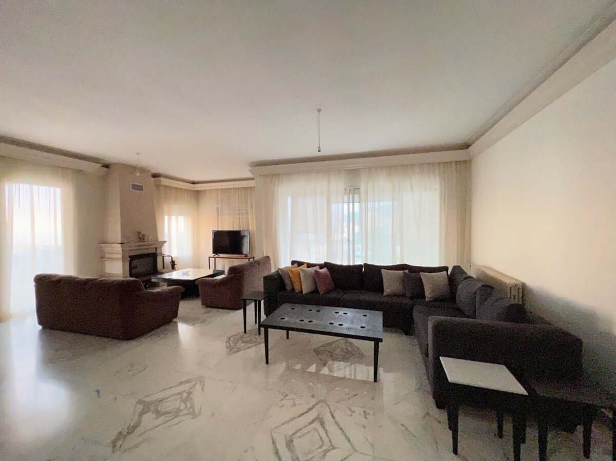 Enorme apartamento de 3 dormitorios de 180 m2 ubicado en una ubicación tranquila y privilegiada en Antelias con vistas panorámicas. El apartamento cuenta con su propio sistema solar y generador privado con electricidad y ascensor las 24 horas, los 7 días de la semana. A poca distancia a pie de todas las principales atracciones de Antelias. (Centros comerciales: ABC Dbaye, Le Mall, St. Elie. Vida nocturna: O de Michel Fadel, The Village y todos los bares en la carretera junto al mar de Dbaye). ¡Netflix disponible!