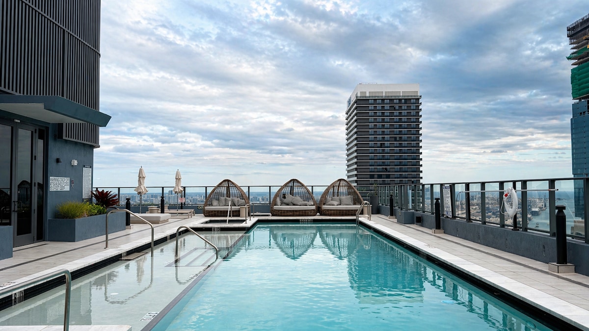 Wake up in a bright, brand-new studio high above Downtown Miami. Floor-to-ceiling windows fill the space with light, and your private balcony becomes the perfect spot for coffee in the morning and skyline views at sunset. You’re not just booking a studio — you get access to a rooftop resort pool, premium gym, coworking lounge, and social rooftop spaces that feel like a private club. Ideal for solo travelers, couples, and business stays who want location, comfort, and amenities in one place.