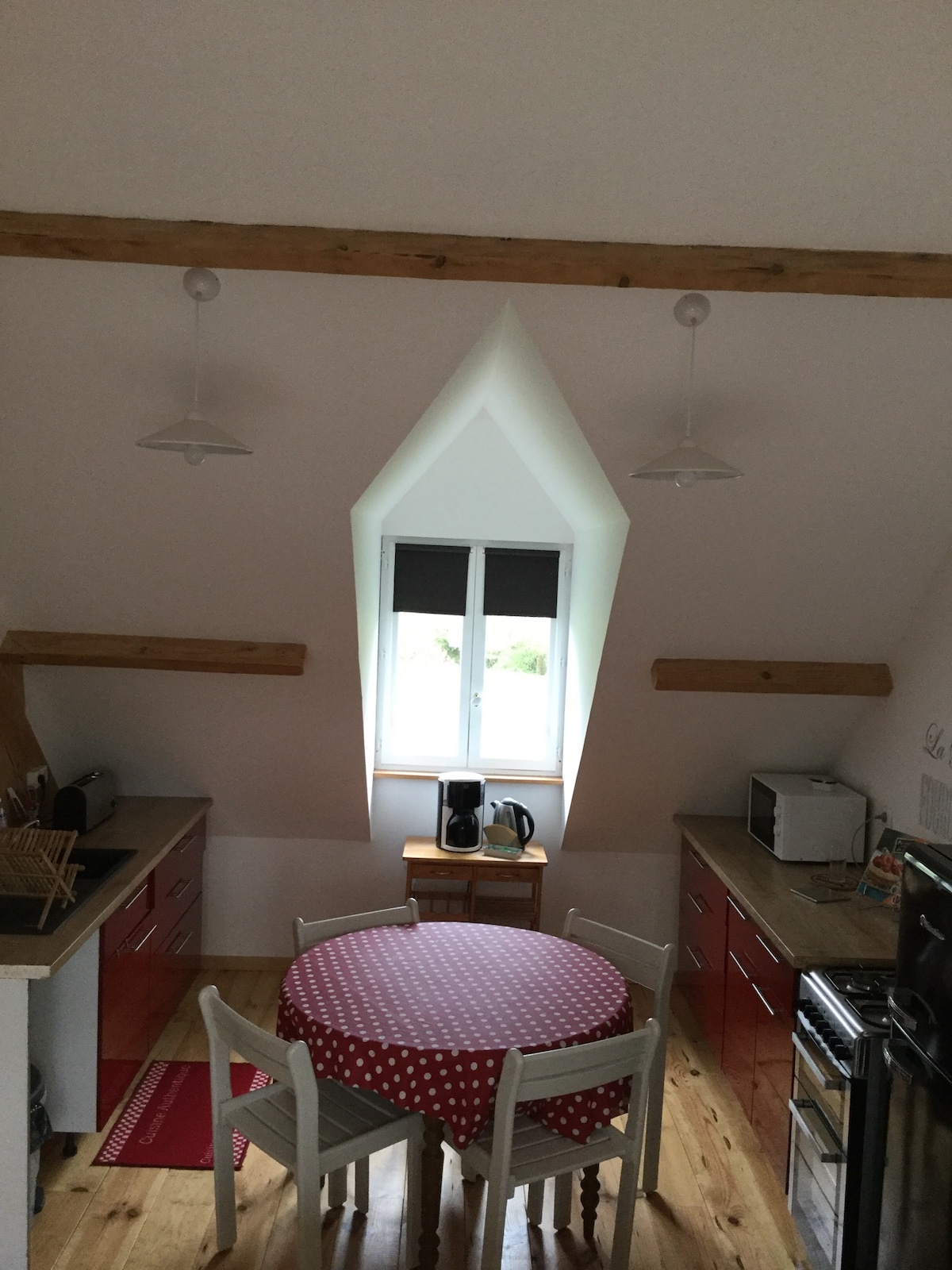 Alojamiento situado encima de una quesería a cargo de mi marido, ofrezco un apartamento independiente en una casa típica de Picarde. El alojamiento tiene capacidad para 6 personas. Vistas al jardín bordeado por un río. Perfecta ubicación para conocer la vegetación estando a 20 minutos de los sitios más conocidos de Picardía como Le Crotoy, Saint Valéry sur Somme, Abbeville. Tenemos un braco alemán macho que le encanta jugar con los otros perros pero que no accede a la vivienda.