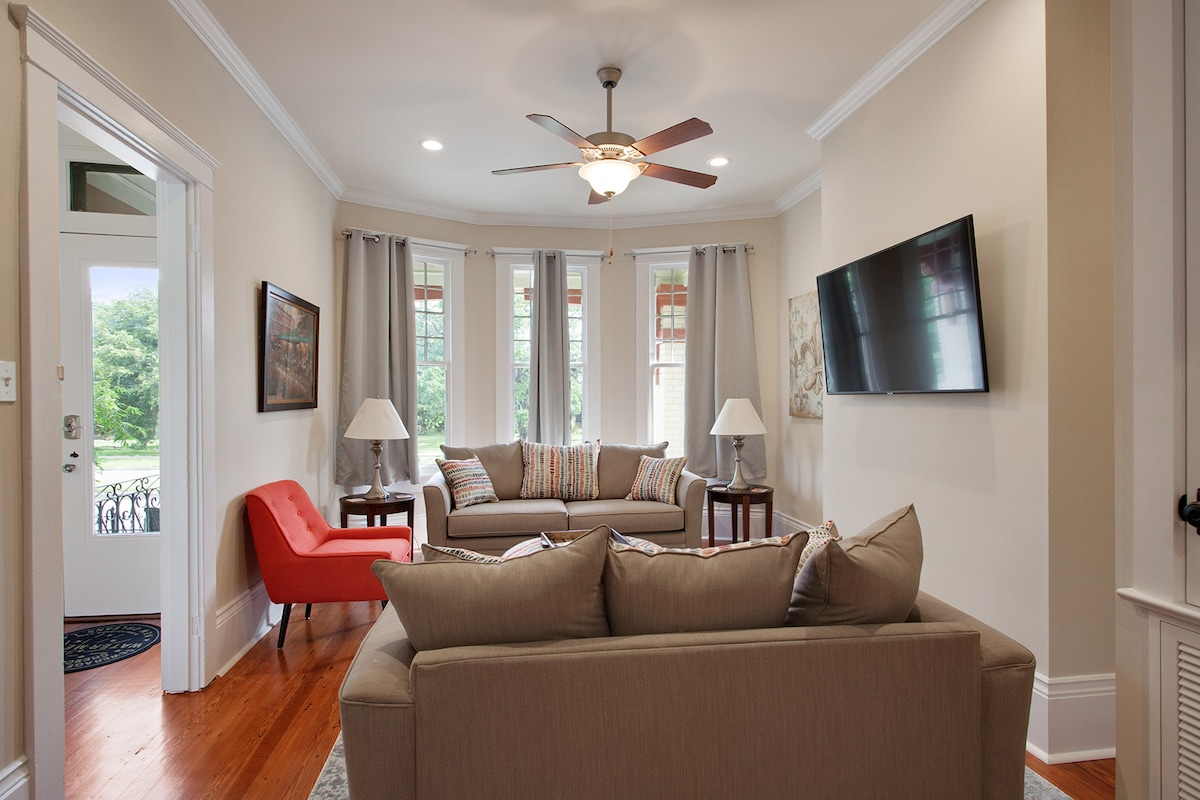 "In all our travels, we have never stayed in a more delightful and charming accommodation." "absolutely immaculate and beautifully decorated." "At three times the price, it would still be a bargain." 1 mile to Tulane U, 3 mi to Bourbon Street/French Quarter/WWII Museum, 2 mi to St Charles Streetcar, 3 mi to Garden District King bed En-suite bath Large TVs Quiet, safe, Uptown between the universities and the French Quarter Balcony Free parking Fast wifi Central ac/heat